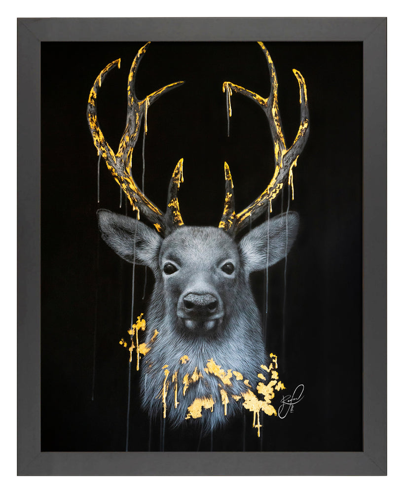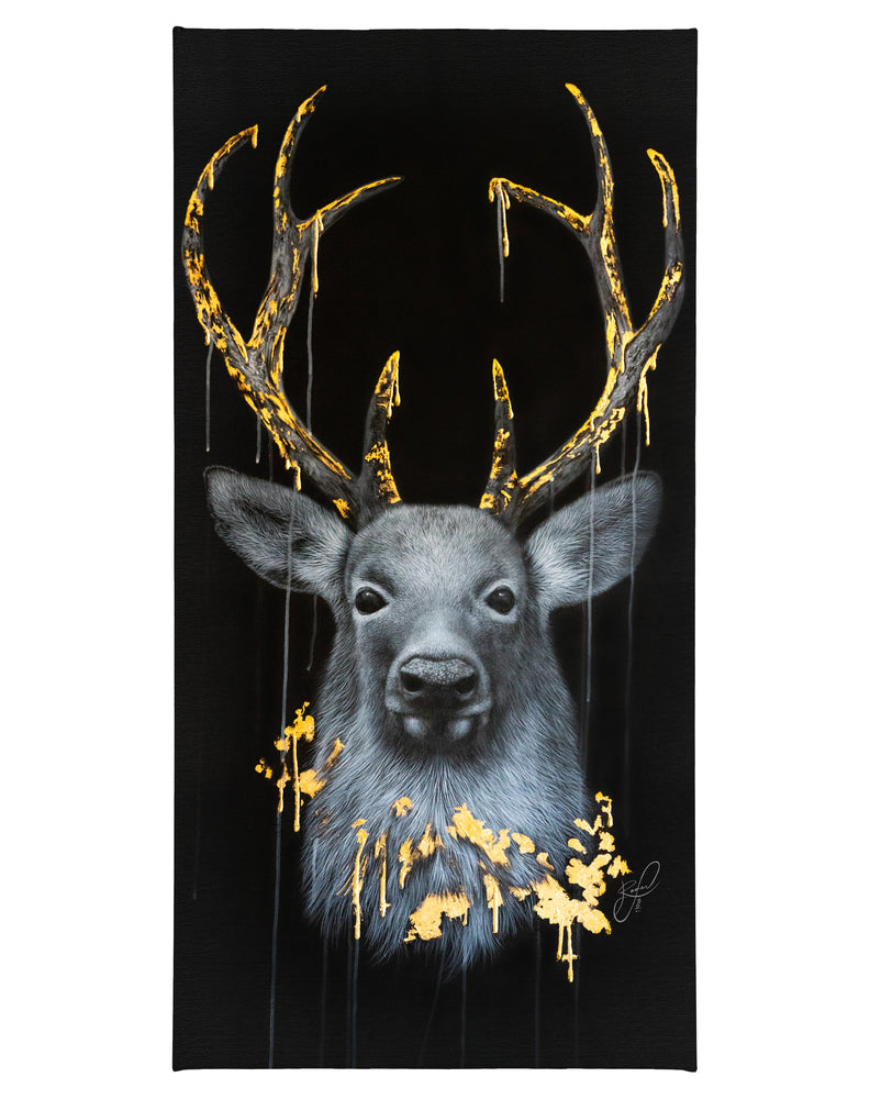 I wanted to break away from my typical medium and add an extra element to my animals. This is the first work I introduced gold to my paintings.