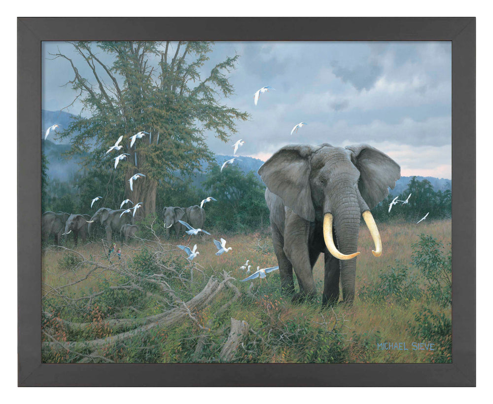 While pitching our tent on the rim of the Ngorongoro Crater, this bull wandered by. His tusk load against the dark rainy background of the wet forest provided an interesting accent to the greens and grays of the day.