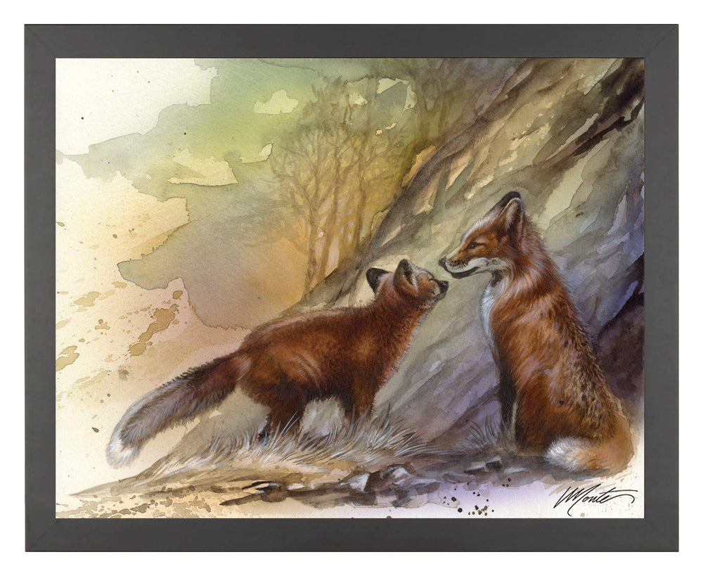 Watchful parents always keep a wary eye upon their playful children, and this rambunctious youngster is no different as mom makes sure he’s…’home before dark’ in this watercolor by artist Monte M Moore.