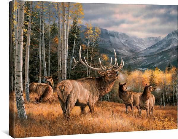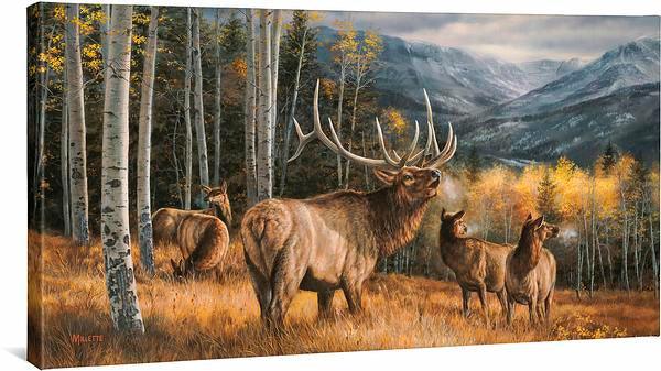 The grandure of the Rocky Mountains and its golden aspen combine to make a wonderful setting for this elk grouping.