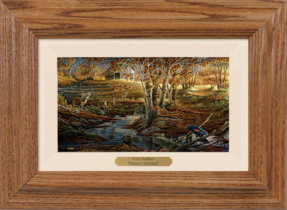 I have often wandered off alone into the woods, Terry Redlin comments, and waited very quietly and still in one place for a long period. After awhile the birds, squirrels and other small animals have become comfortable with my presence and gone about their normal activities. But when deer have approached, these small creatures would begin to make a racket, sending out a warning that something strange and possibly dangerous was in the area. I've actually experienced this behavior several times. It's a bit eerie but, also, comforting to understand that nature's creatures seem to watch out for each other.