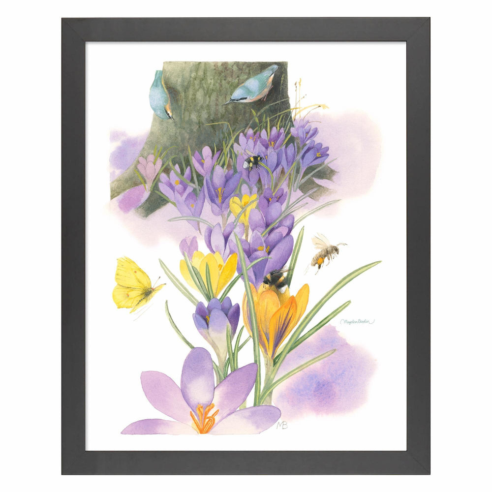 Our garden in the woods looks as if somebody from high above sprinkled crocus flowers everywhere. A purple blanket is draped over the lawn. Our dog Yogi is quite curious by nature and every time I bend down to take a closer look at one of the flowers he has to be right by my side. Unfortunately he has large paws…poor delicate crocuses.