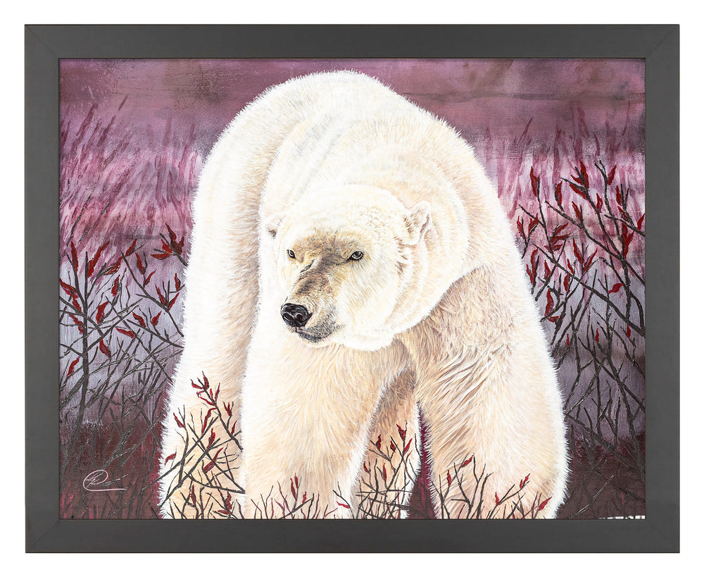 I had an itch to outdo any detail using longer hair so I was merely interested in doing a polar bear. This guy also was my first attempt at using modeling paste within the branches to add an extra 3 dimensional touch.