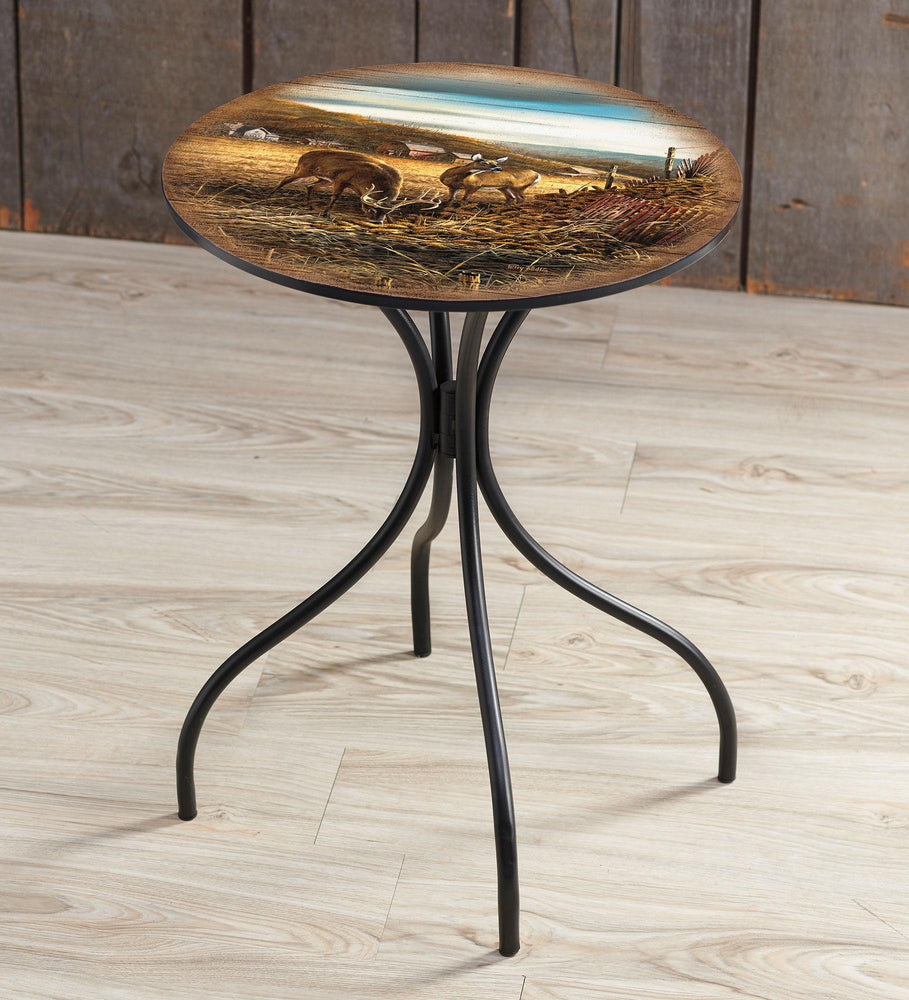The setting for this unique encounter was witnessed by a friend of the artist on a quiet fall afternoon. Both the pheasants and the white-tailed deer have discovered the faulty make-shift corn crib. They keep a wary eye on one another, but apparently feel any potential trouble is secondary for as long as the corn holds out.