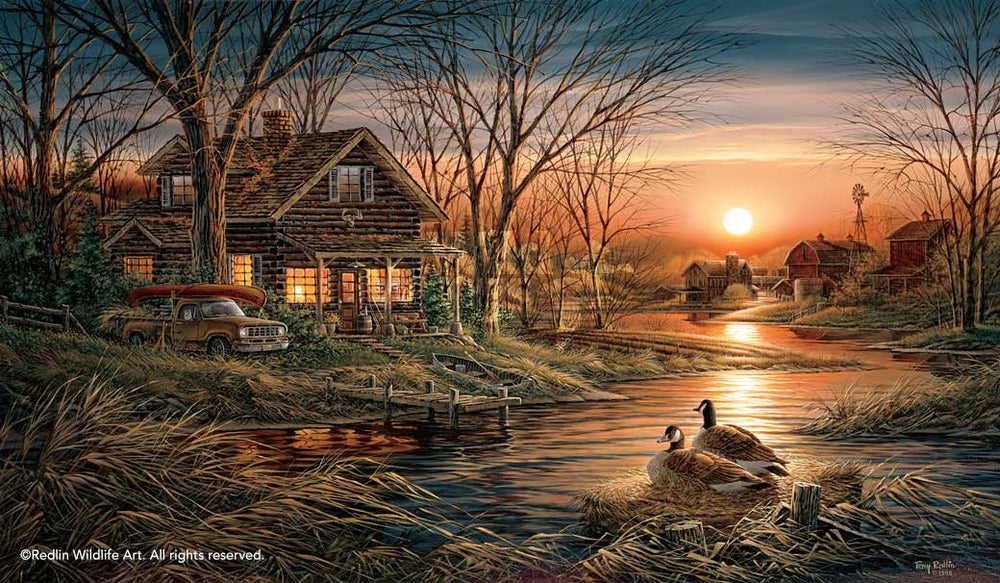 The human inhabitants who live in this location have taken special efforts to welcome the arriving wildlife. The gentle, meandering stream offers a natural haven for visiting waterfowl, but these two Canada honkers have discovered an unusual and ideal nesting spot. Conservationists have placed a tightly rolled hay bale at water's edge. The bale was donated by a local farmer and was carefully spotted on the ice during the previous winter. As spring arrived and the ice melted the bale dropped into its appointed place. Such innovative thinking is a beautiful example of how man and nature are working together to become good Shoreline Neighbors.