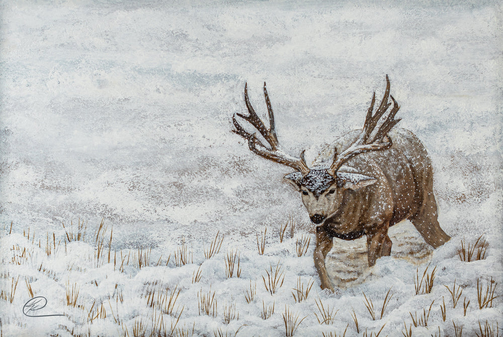 I wanted to attempt a bit more abstract approach mixed with detail. I love hanging this piece up around Christmas time.