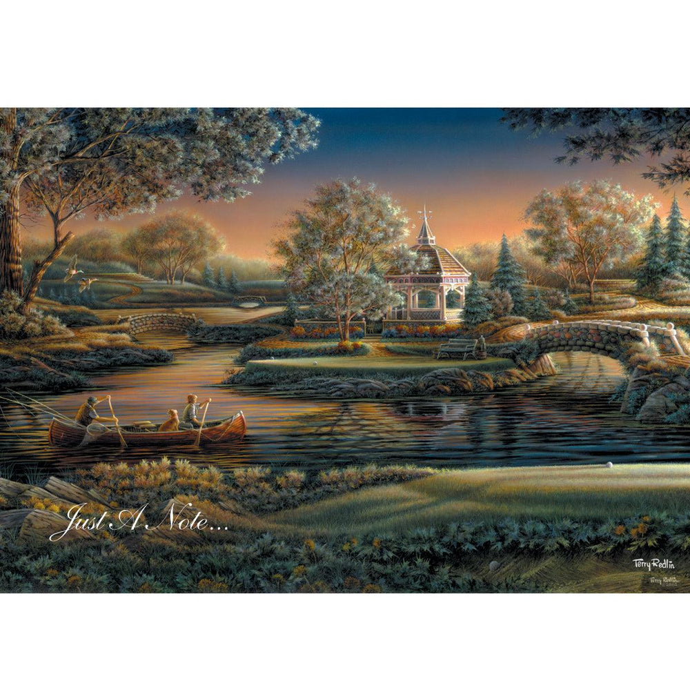 Nature’s splendor can be enjoyed by outdoorsmen of varied interests. After a day of fishing downstream, paddlers quietly head home on a river that snakes through a golf course of many water hazards. A golf ball drops on the nearby green as mallards fly overhead. Only the unseen flag’s low hanging shadow informs us that light is fading fast.