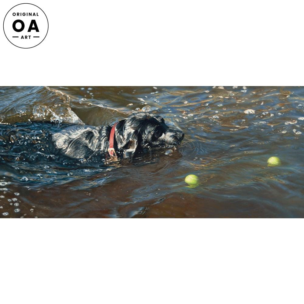 "Dog owners are familiar with this scene. What will this lab do? I'm betting on her triumphantly stuffing both balls into her mouth."