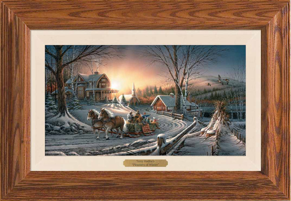 In this peaceful scene the children excitedly point out the mallards flying low overhead. The proud Belgians, the warmly bundled family, the crisp country air and the fading sun all convey the essential meaning of pleasures of winter. We are reminded of a more innocent time when the countryside was at peace with itself and traditional family values reigned.