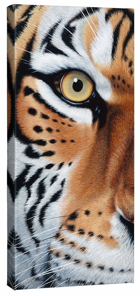 I wanted to create a wildlife piece that would have a modern application so I used a fairly tall slender take on a tiger, using a 'slice' of his face - focusing on the eye.