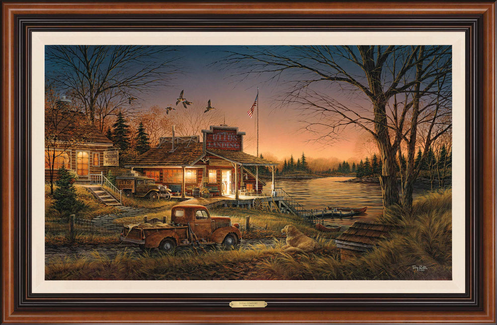 On this beautiful fall morning there is not a person in sight. Only mallards move silently overhead as the loyal dog patiently waits for his master to make last minute purchases at this secluded country store. The early morning breeze has begun to ripple the water and gently stir the flag. Hunting gear has been partially unloaded from the rusty Dodge pickup. The boat is ready at the dock. Soon the hunters will emerge from the lighted doorway and head out down the narrow bay to open water. We can be assured that today's hunt will be highly successful, the conversation rewarding and the memories golden.