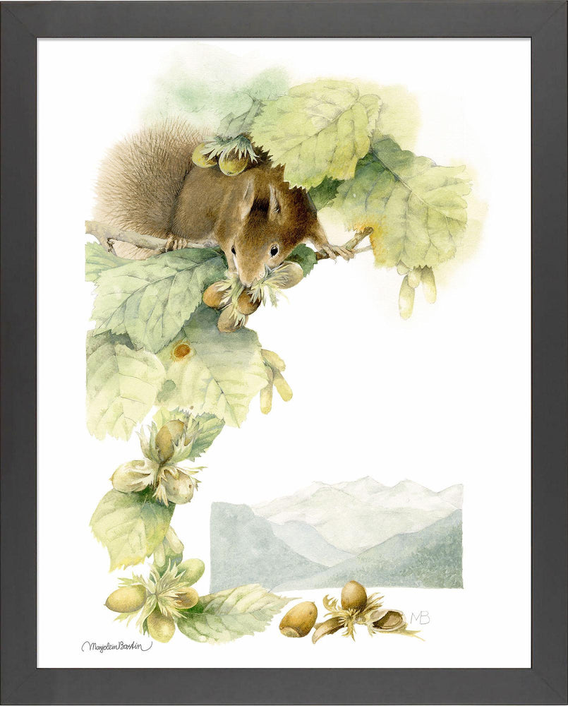 The squirrels in my garden in the Netherlands were just starting to collect the chestnuts in front of my studio when we left for Switzerland. Here it seems the hazelnuts have ripened to the point that the squirrels are seeking them out for their winter food supply. I've traded one set of squirrels for another but with a dramatically different backdrop!