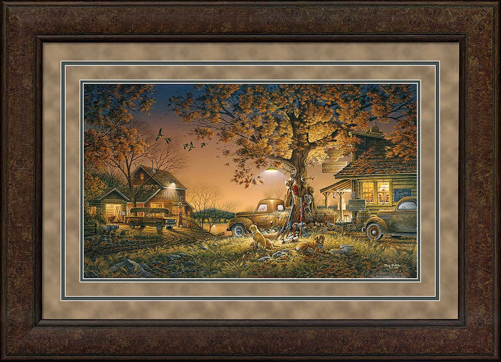 The long day of hunting in nearby sloughs and lakes is over. The party has returned to the Lakeside Lodge and is inside resting, taking on refreshments and perhaps telling a tall tale or two. Can you hear the muffled laughter? The sign nailed to the lodge wall, “Last Chance-Inventory,” informs us that the owner understands what his hunting friends require. After many years of use, the tree has become the official place to stack guns, hang out wet clothing and repack shells and other gear. Every sportsman, the lodge owner knows, wants to be ready for the next day.
