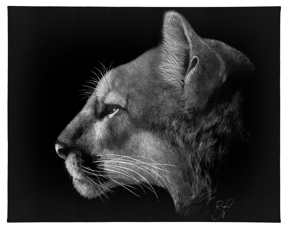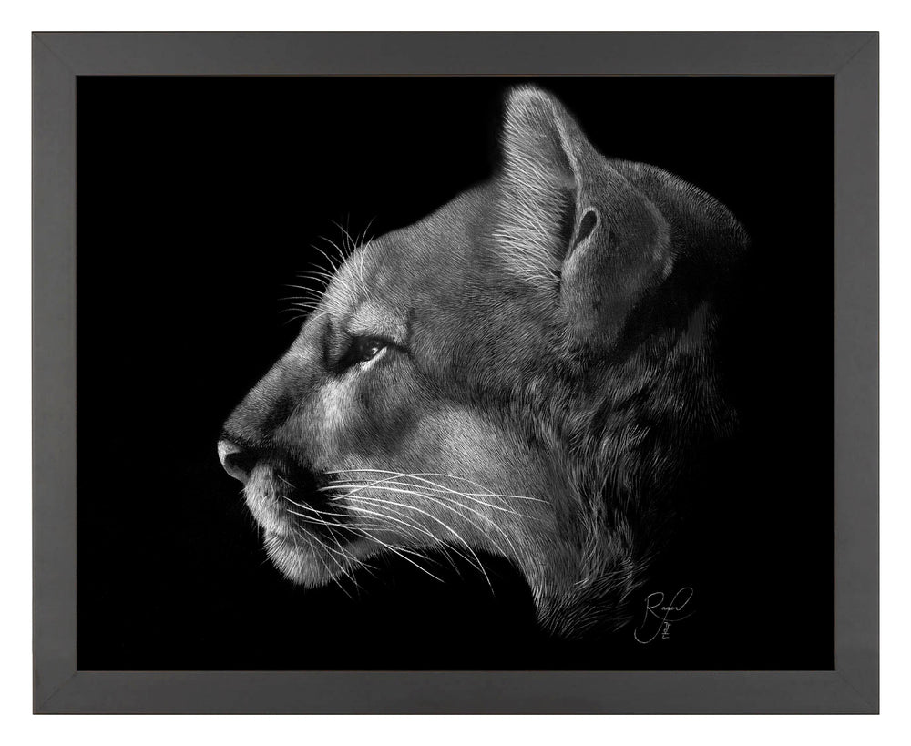 captivating black and white piece depicting a powerful and graceful cougar. I