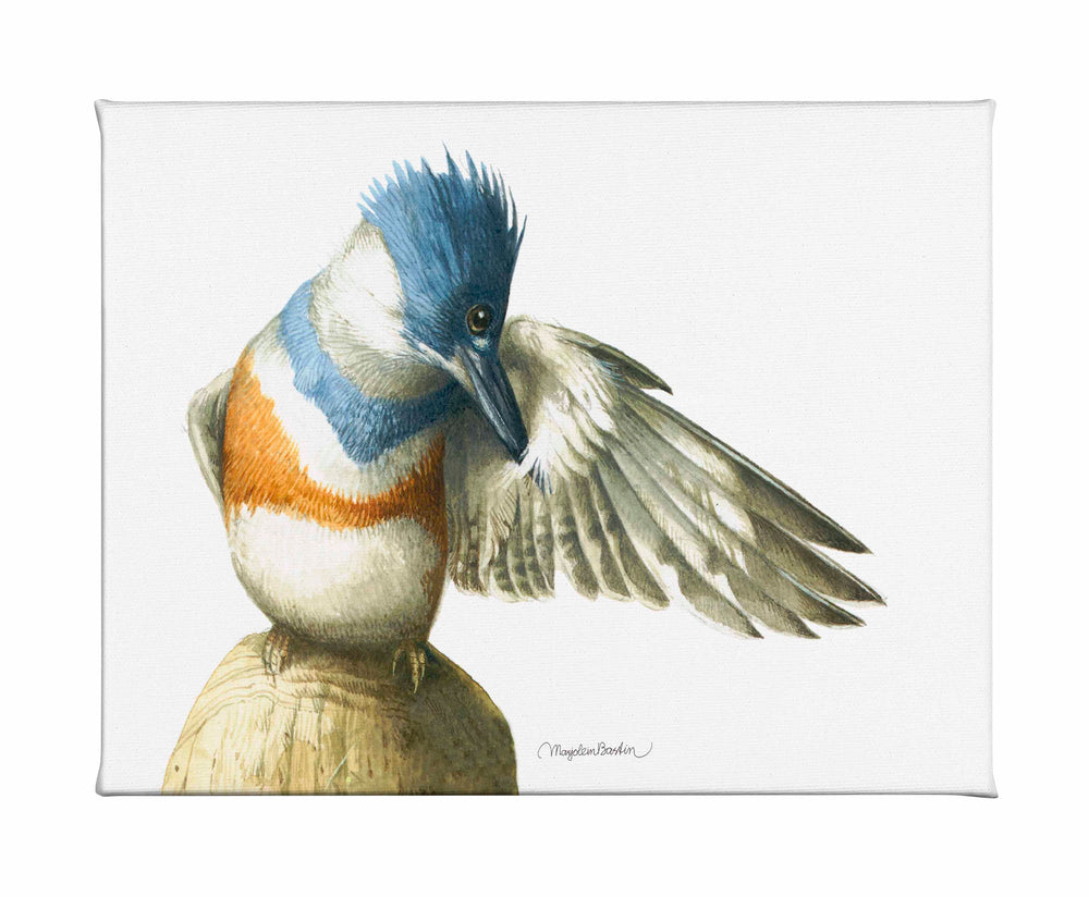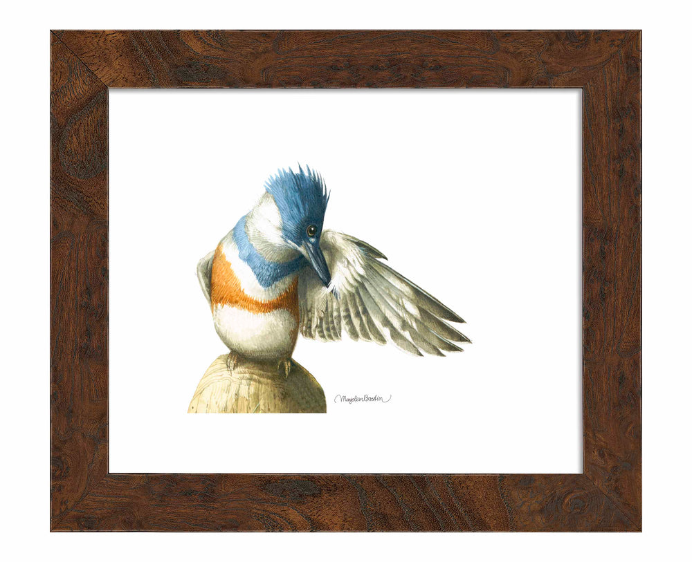 Perched on top of the mooring post for our old row boat the Belted Kingfisher is preening its feathers. Normally it sits in this spot to watch for potential prey in the pond below, but every now and then it’s time to remove debris and parasites from the feathers and make sure everything is in great shape for the next dive.
