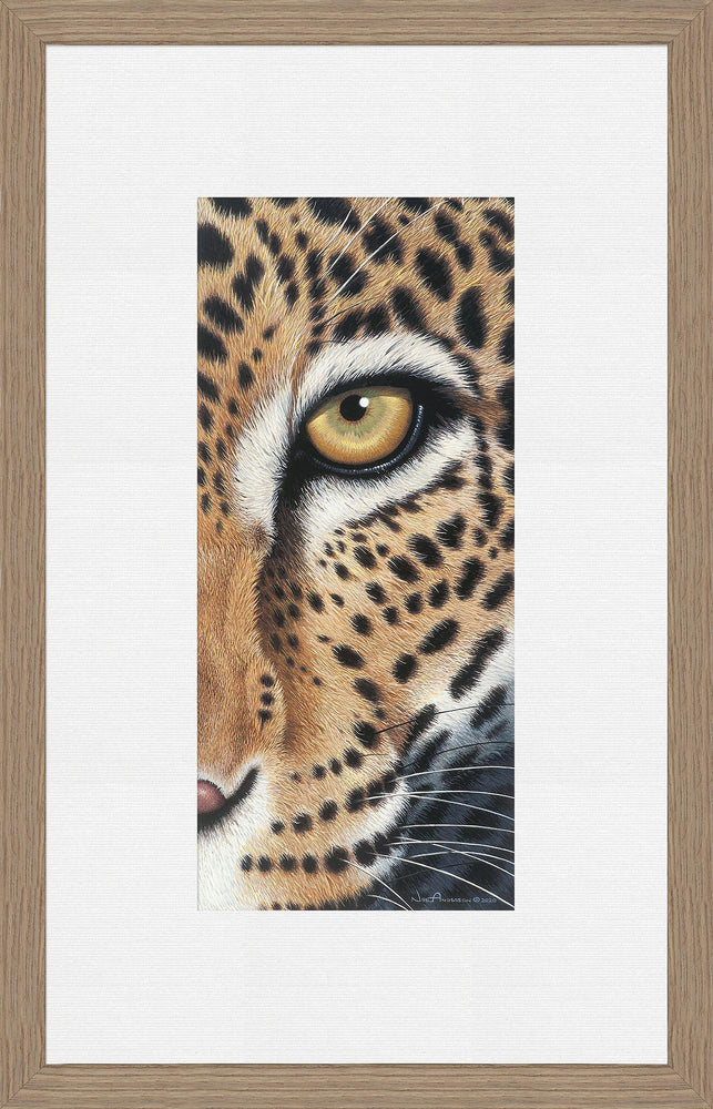 Having previously completed a Tiger in this same format, I was eager to paint another large cat as a companion piece with the same intense stare and contemporary application.