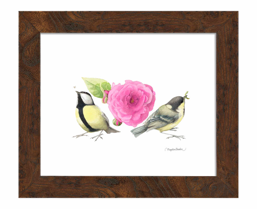 I’m not the only one enjoying the Zepherine Drouhin rose in my garden, the Great tits are hunting for insects around it. Maybe the fact that this climbing rose is completely thornless has something to do with it? It certainly contributes to my appreciation for the variety! The blooms are a gorgeous pink and they appear for quite a few months all the way into autumn. Maybe insects are attracted by the scent of the roses, which is wonderful indeed.