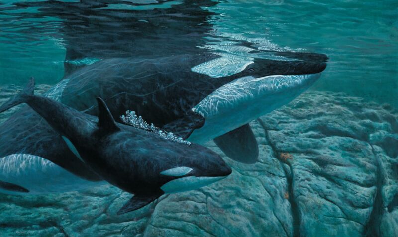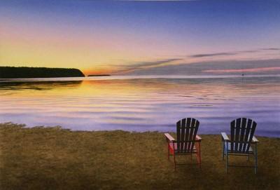 The reflections and rocky shore set the pace for this painting, 'Shoreline...