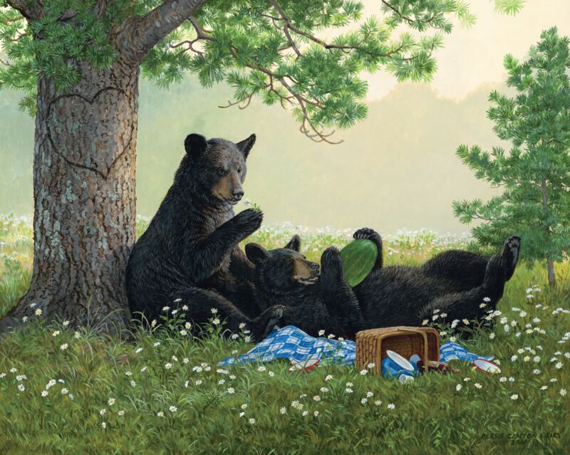 These two bears have confiscated a picnic. They are enjoying a relaxing...