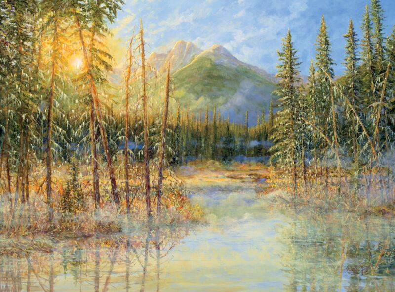The beaver pond and mountain river valley hold wisps of lingering mist...