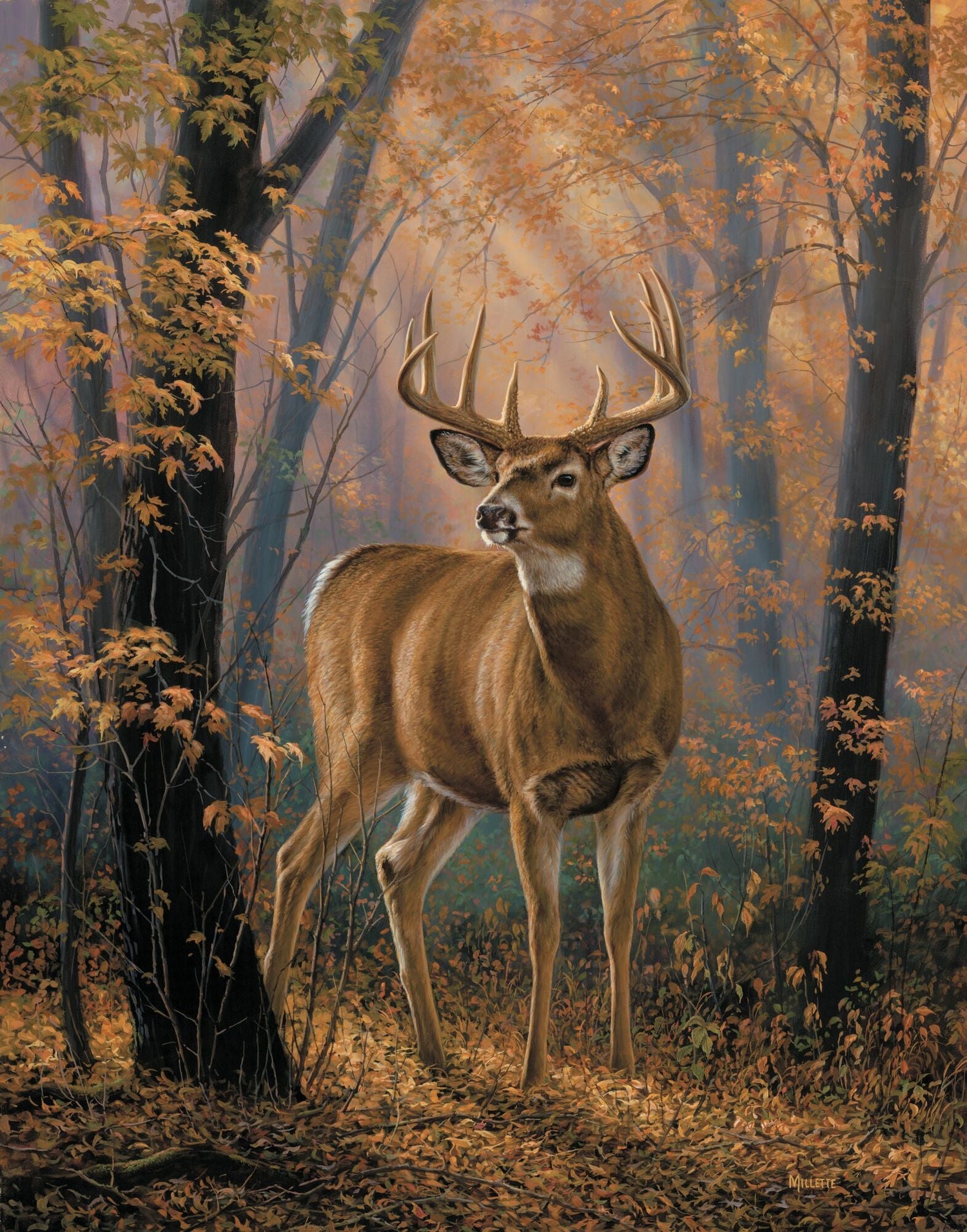 Original oil painting of a woodland sniper hawk by John Aldrich.
