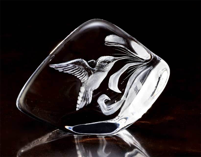 The subjects of these crystal sculptures seem to float weightlessly in their...