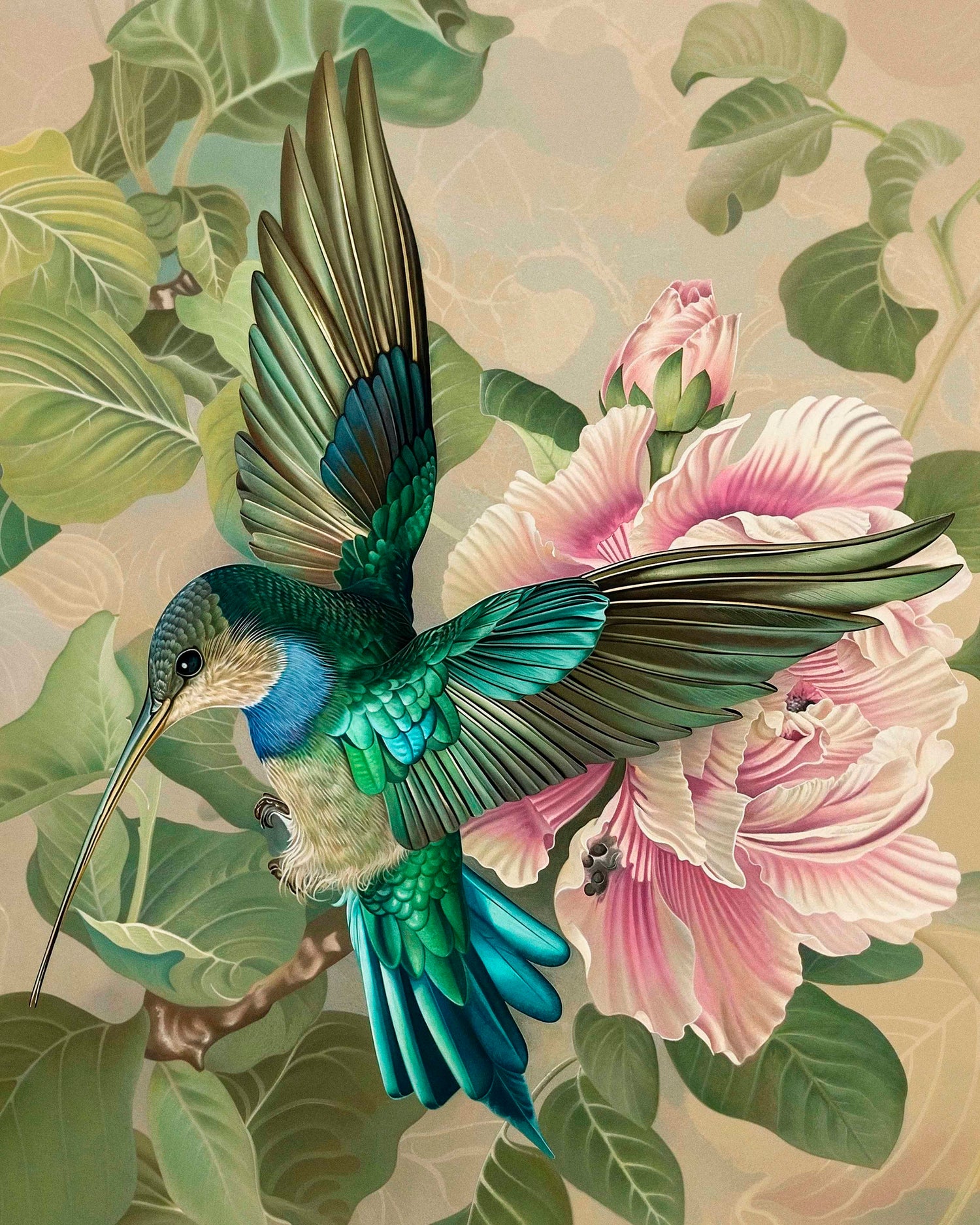 Emerald Flight - Hummingbird Among Hibiscus is a stunning piece from the...
