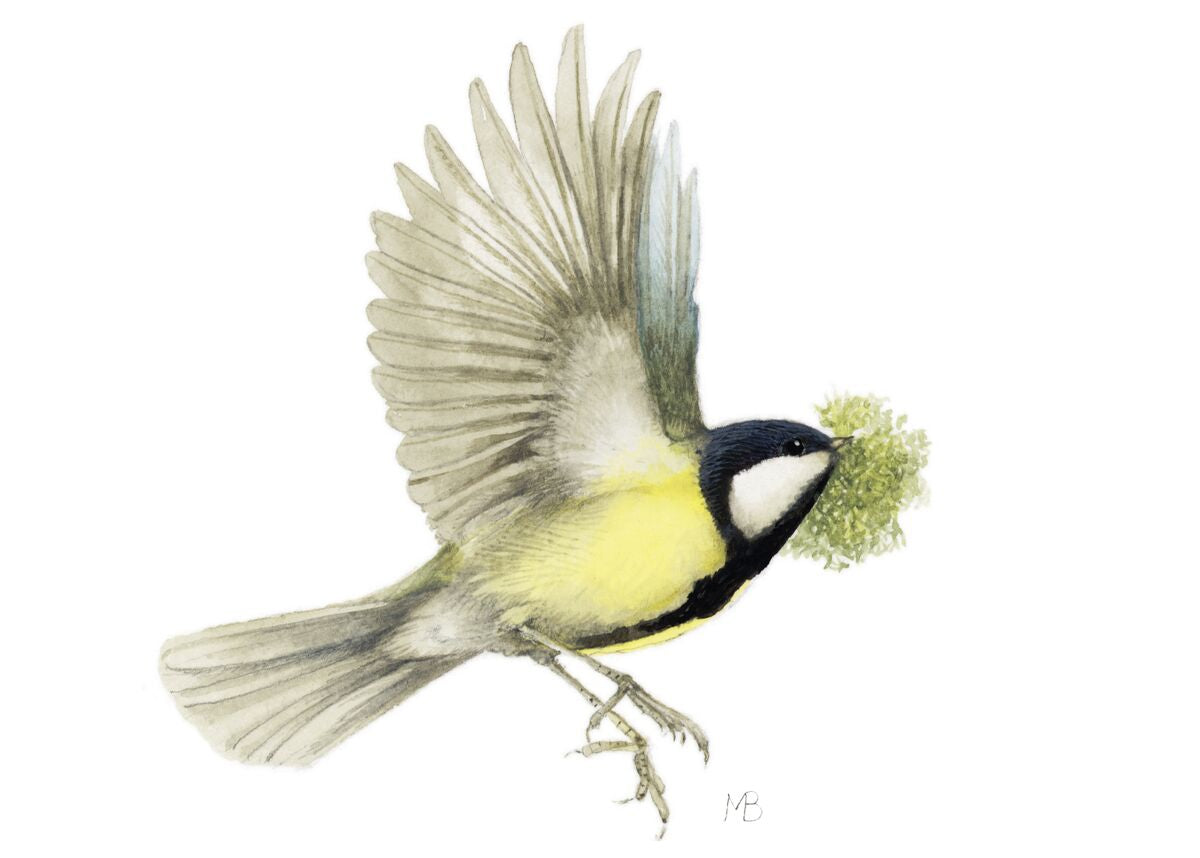 “The fir tree outside my studio window provided an entertaining winter spectacle—the...