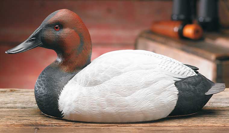 These reproductions from hand-carved decoys include many waterfowl species, such as mallard,...