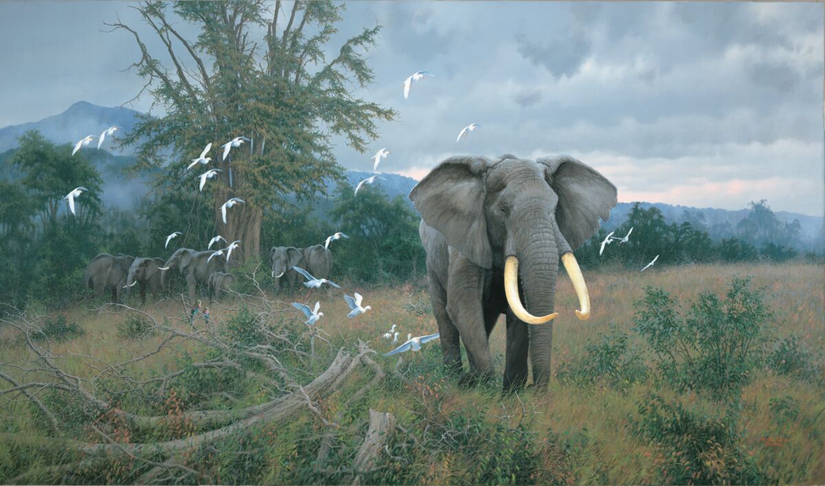 "Hill Country Monarch II" presents the powerful silhouette of a longhorn standing...