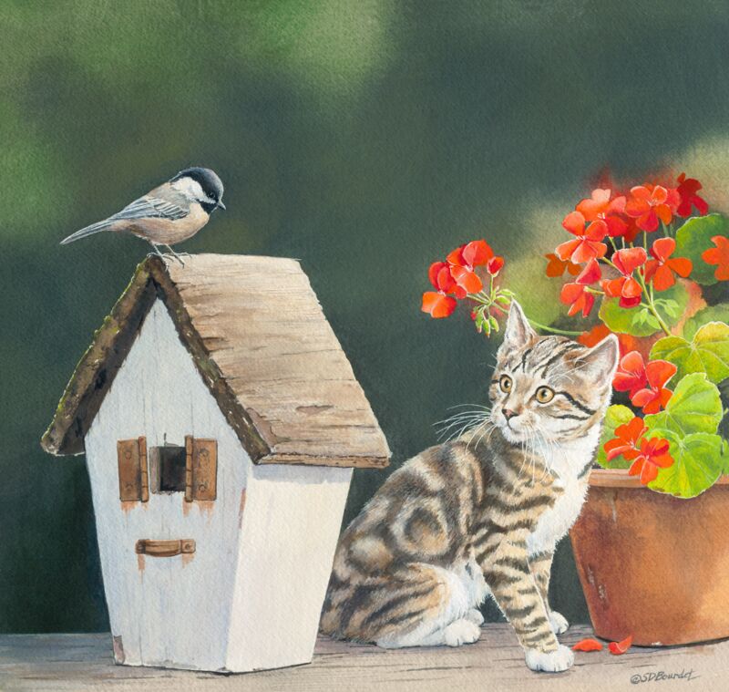 “Fascinated by all things she can chase, a kitten prowls her backyard...
