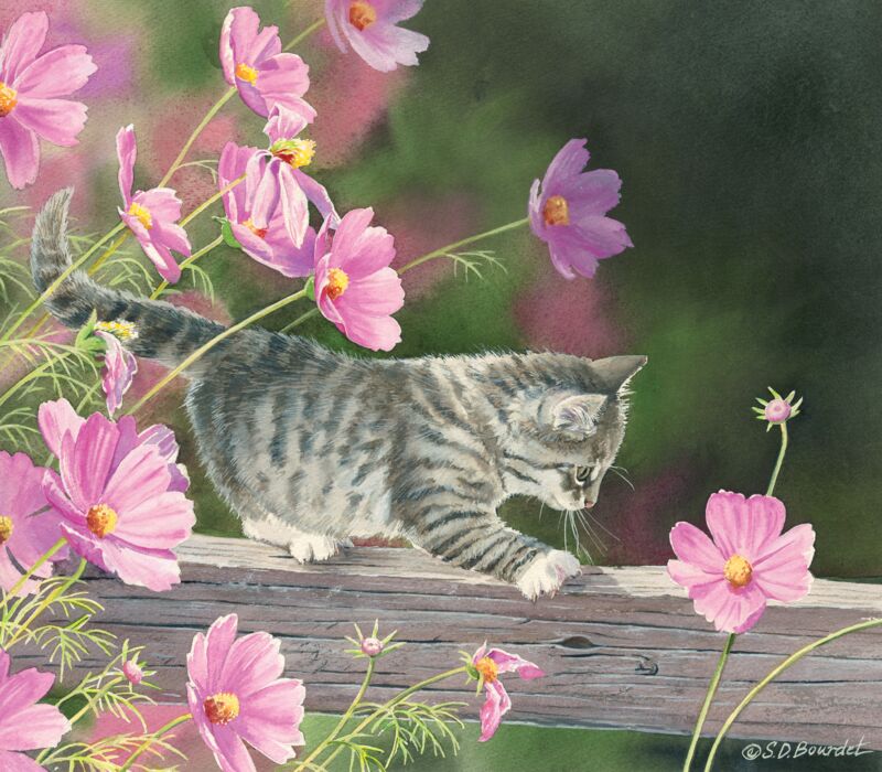 In this painting, I enjoyed contrasting the softness of feathers with the...