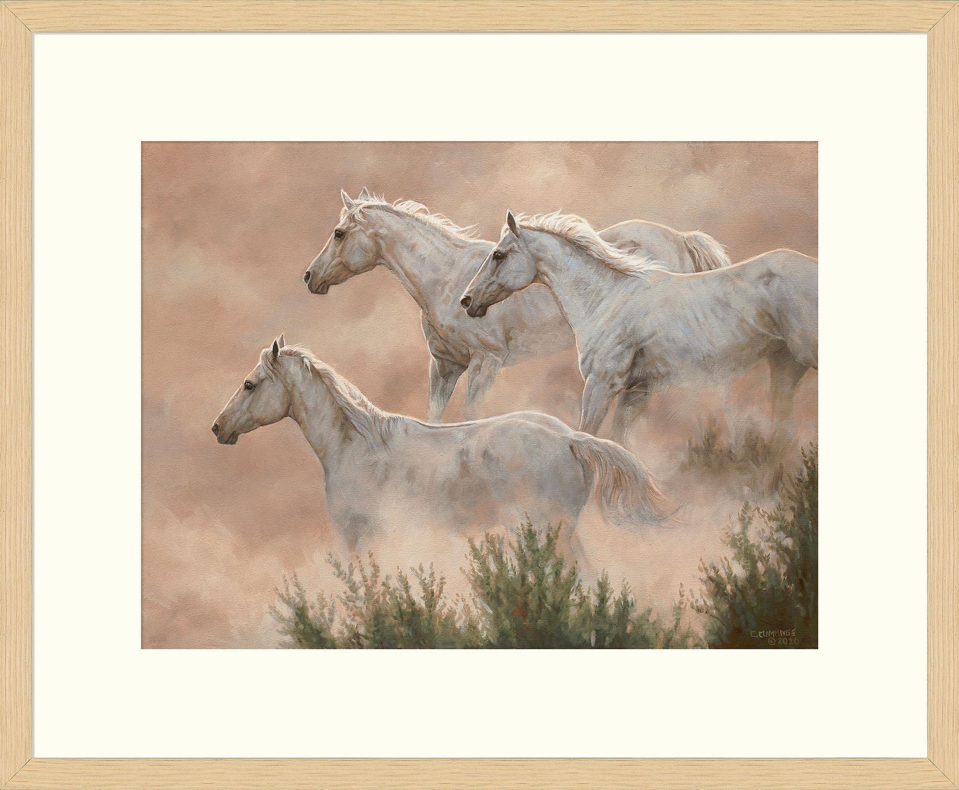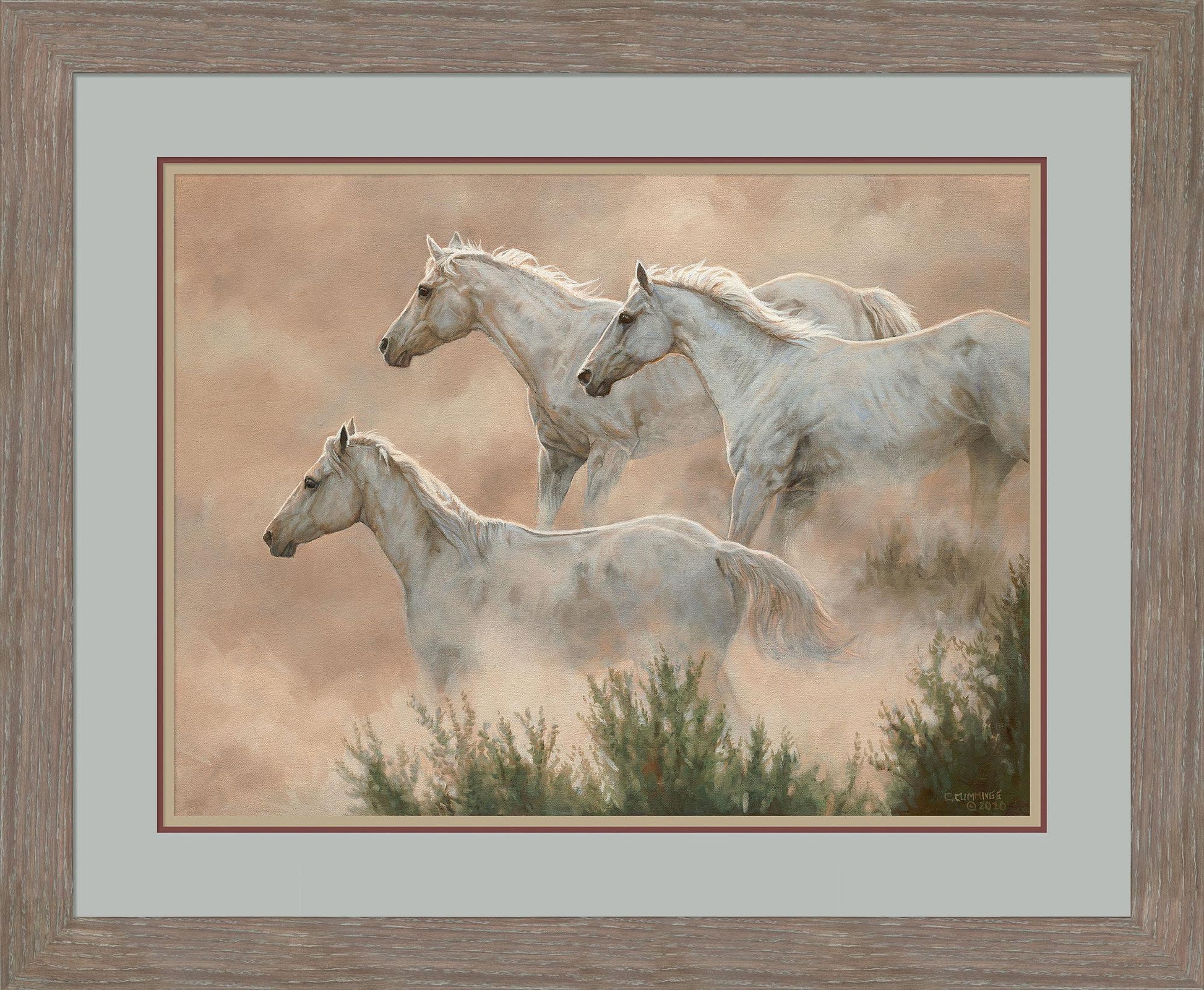 Limited edition of 450 signed and numbered art prints. Image size, 18"H x 24"W. Framed size, 28"H x 34"W with 2" washed tan wood moulding. Triple matting with gray outer mat. Published exclusively by Wild Wings®. Printed and framed in the North America.