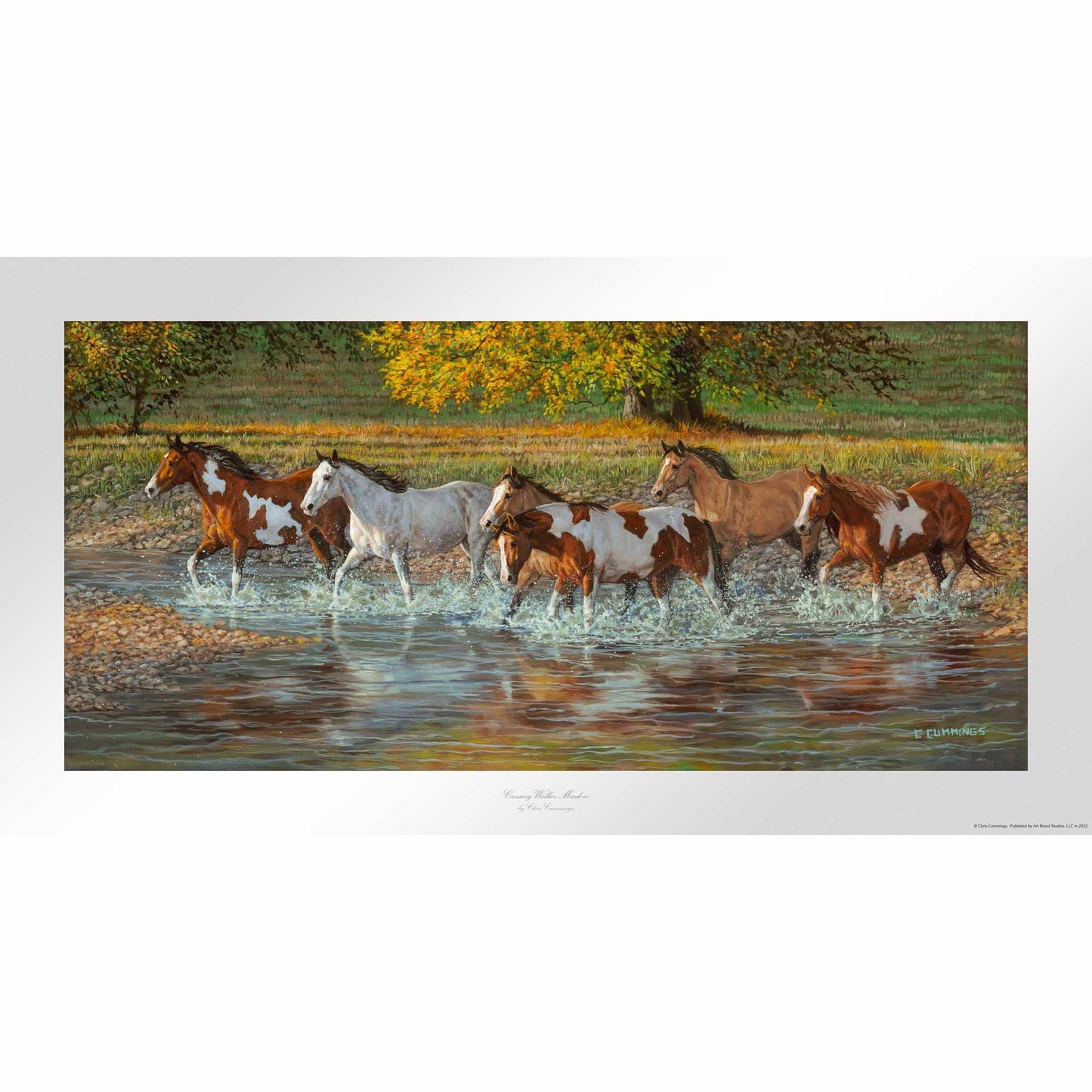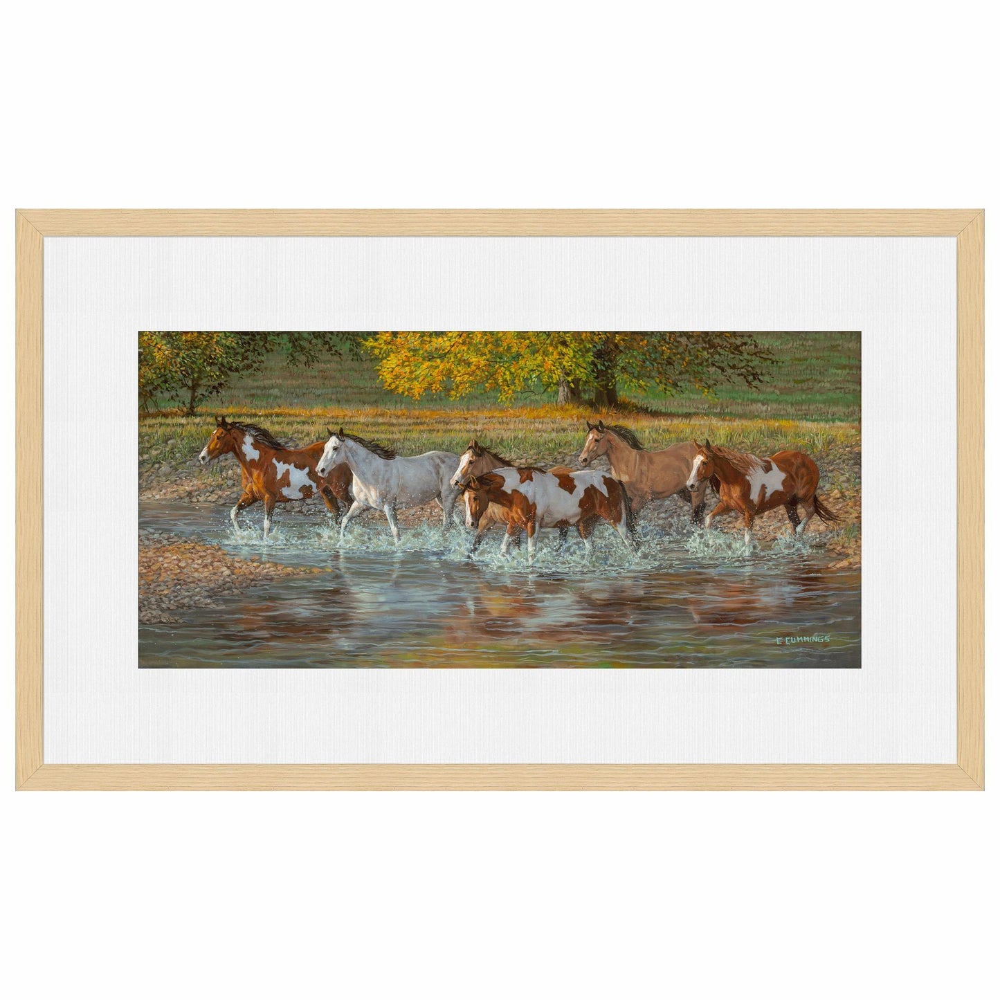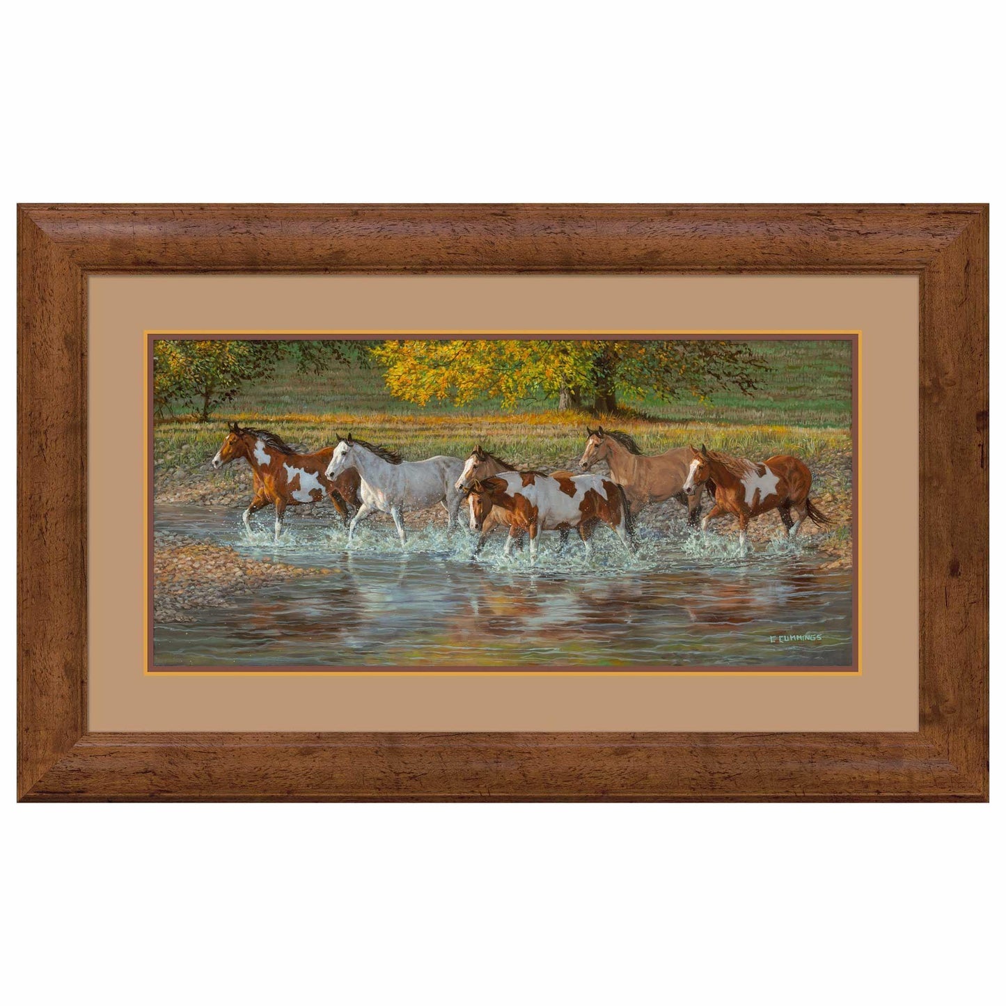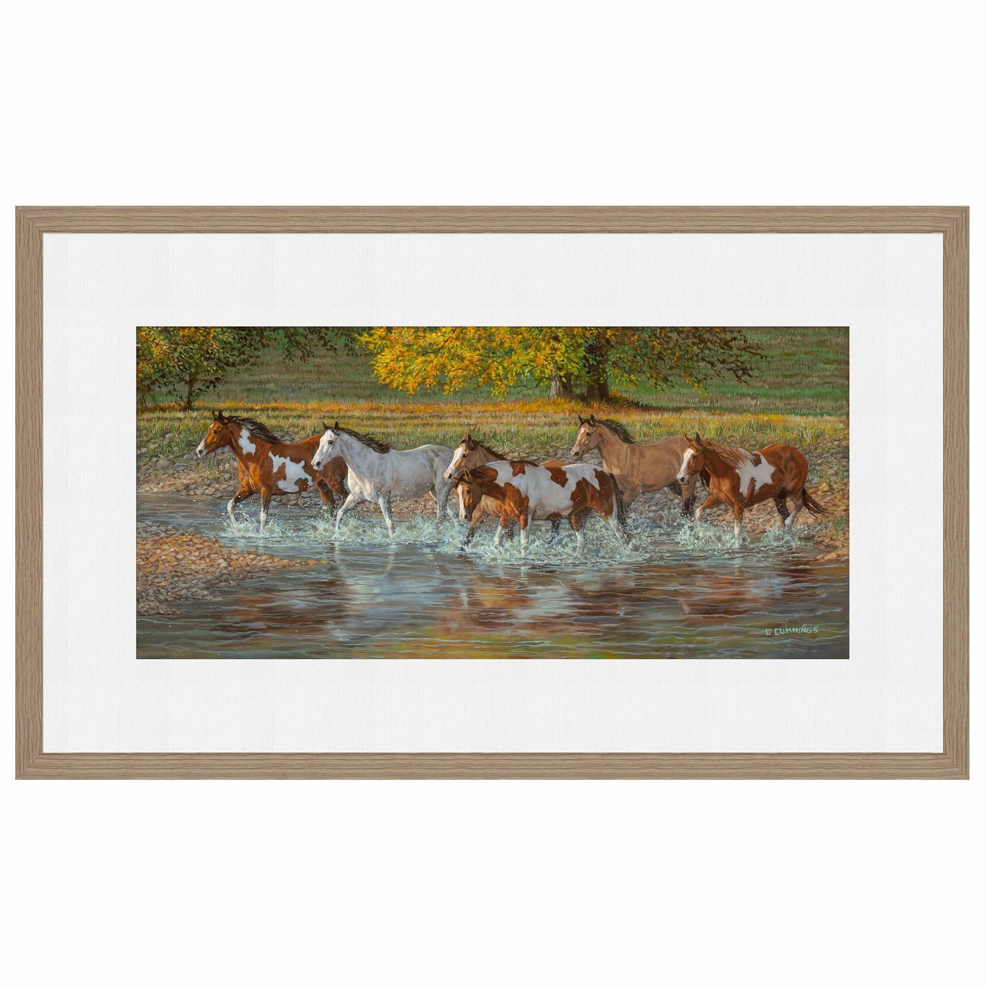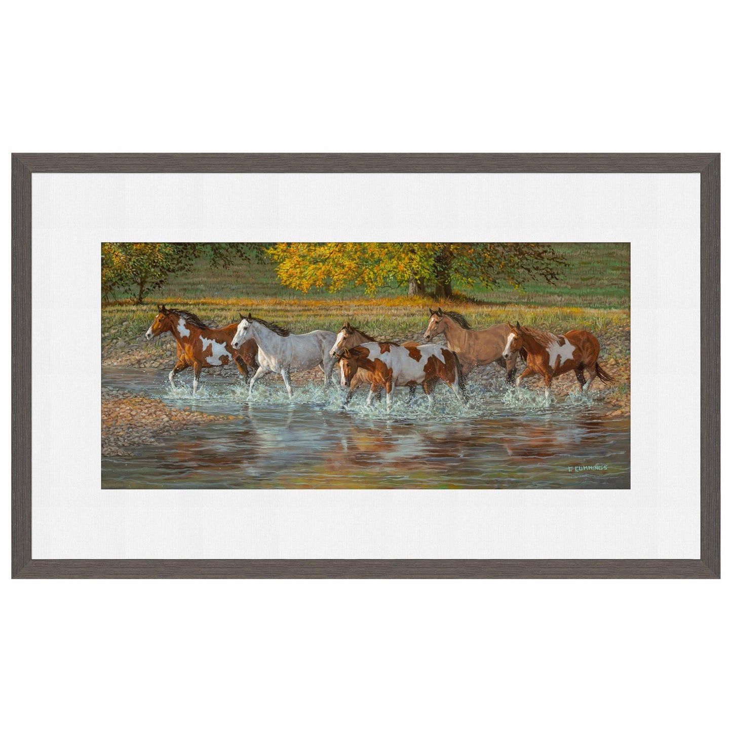 Limited edition of 450 signed and numbered prints. Image size, 13" x 30". Framed size, 26" x 42" with 1" charcoal finished wood moulding and single white outer mat. Published exclusively by Wild Wings. Made in the North America.