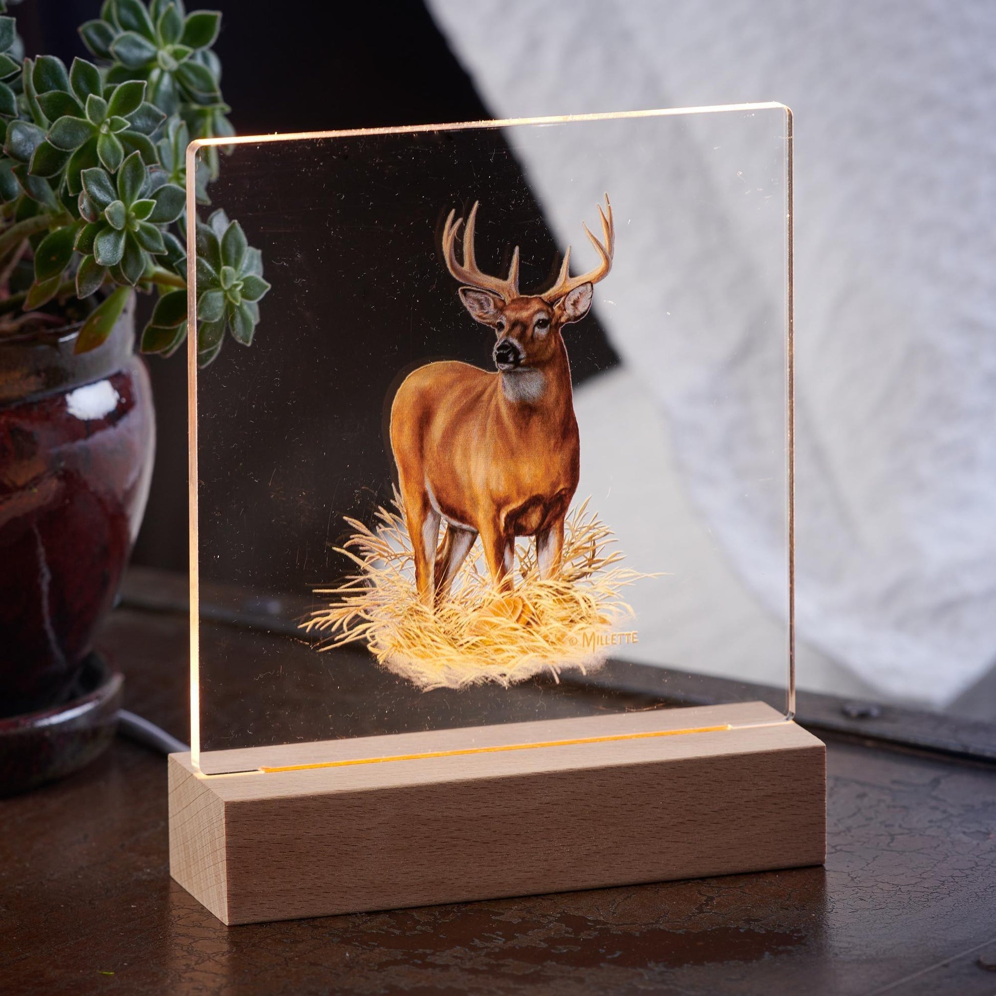A soft ambient light with a favorite image leaves a sense of calm amid the darkness of night and beauty by daylight. A wood base with acrylic panel is illuminated by a 3-watt warm LED light. USB plug-in with button switch. USB adaptor and microfiber cleaning cloth are included. Components are UL listed. Artwork by Rosemary Millette. Published by Wild Wings; a division of Art Brand Studios, LLC. Designed and printed in the USA. Height: 7.25" Depth: 1.75"