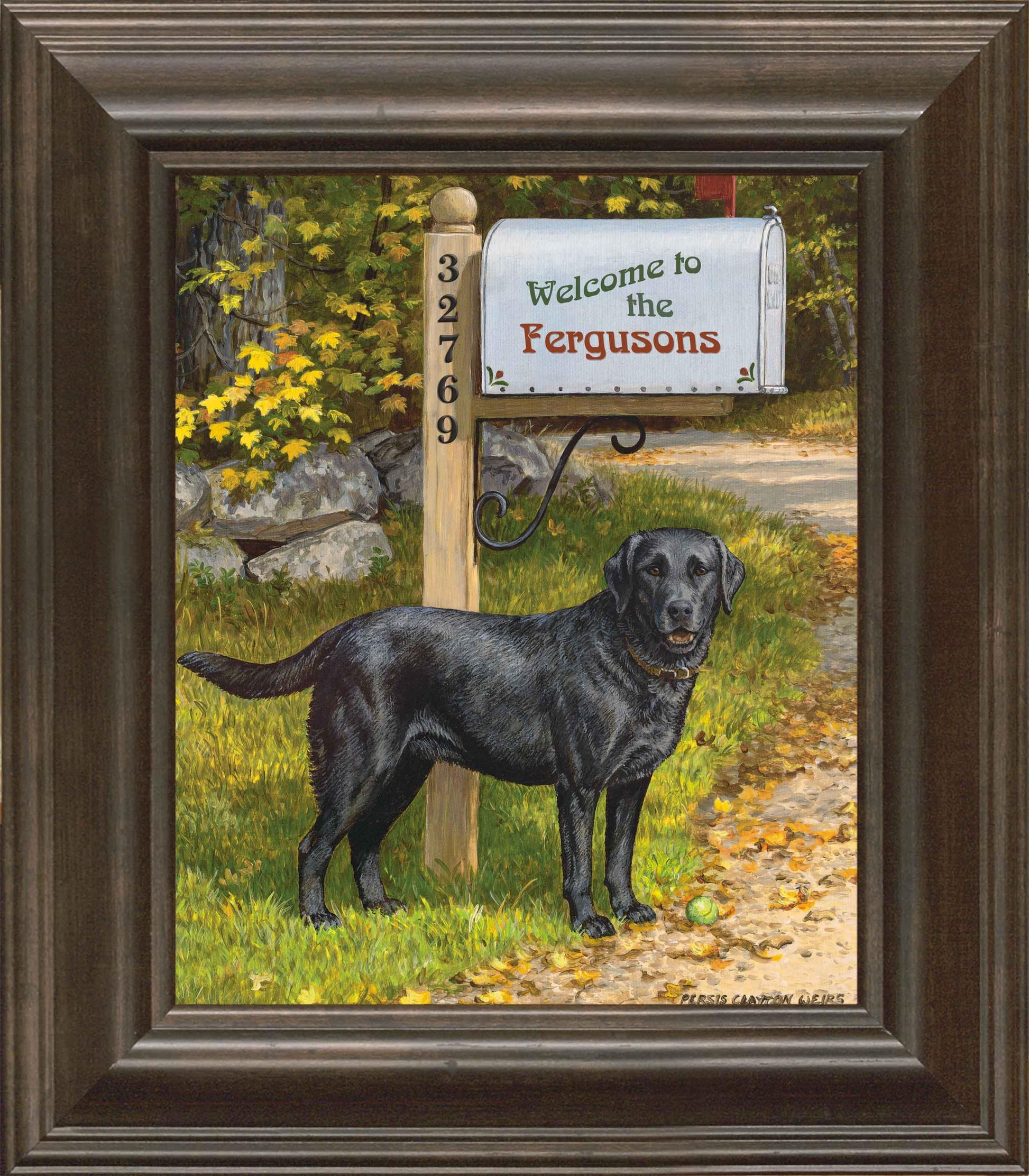 Open personalized canvas edition. Image size, 12" x 10. Framed size, 16" x 14" with 2-3/4" espresso walnut-finished moulding. Published exclusively by Wild Wings.