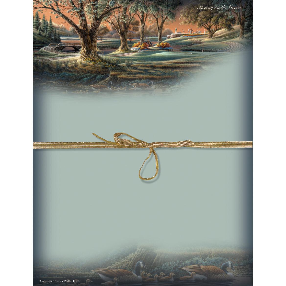 Thirty sheets of inkjet/laser compatible sheets featuring the art of beloved master artist Terry Redlin. This image features a young couple bringing their Christmas tree home in a horse drawn sleigh. Perfect for those family holiday update letters! 8-1/2" x 11". Made in the USA.