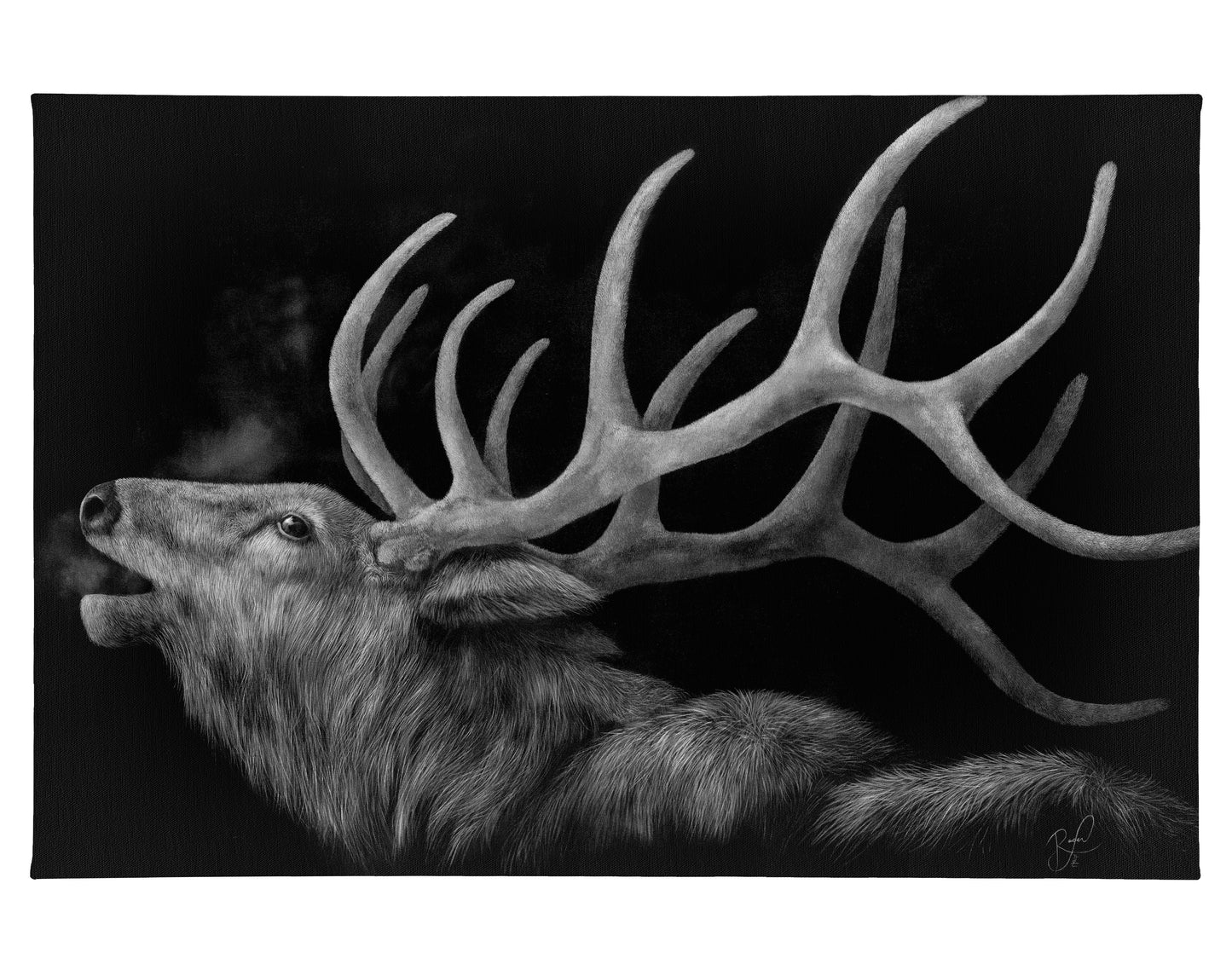As the artist behind "Ascendance," I aimed to capture the essence of the majestic elk in black and white. Through my skillful use of Realism/Realistic technique and monochromatic palette, I created a timeless and sophisticated piece that invites viewers to appreciate the intricate details of the animal's features. My painting is a celebration of wildlife and serves as a reminder of the importance of preserving and protecting these magnificent creatures. I believe any art lover or wildlife enthusiast would be honored to add this large elk painting to their collection.About the Product