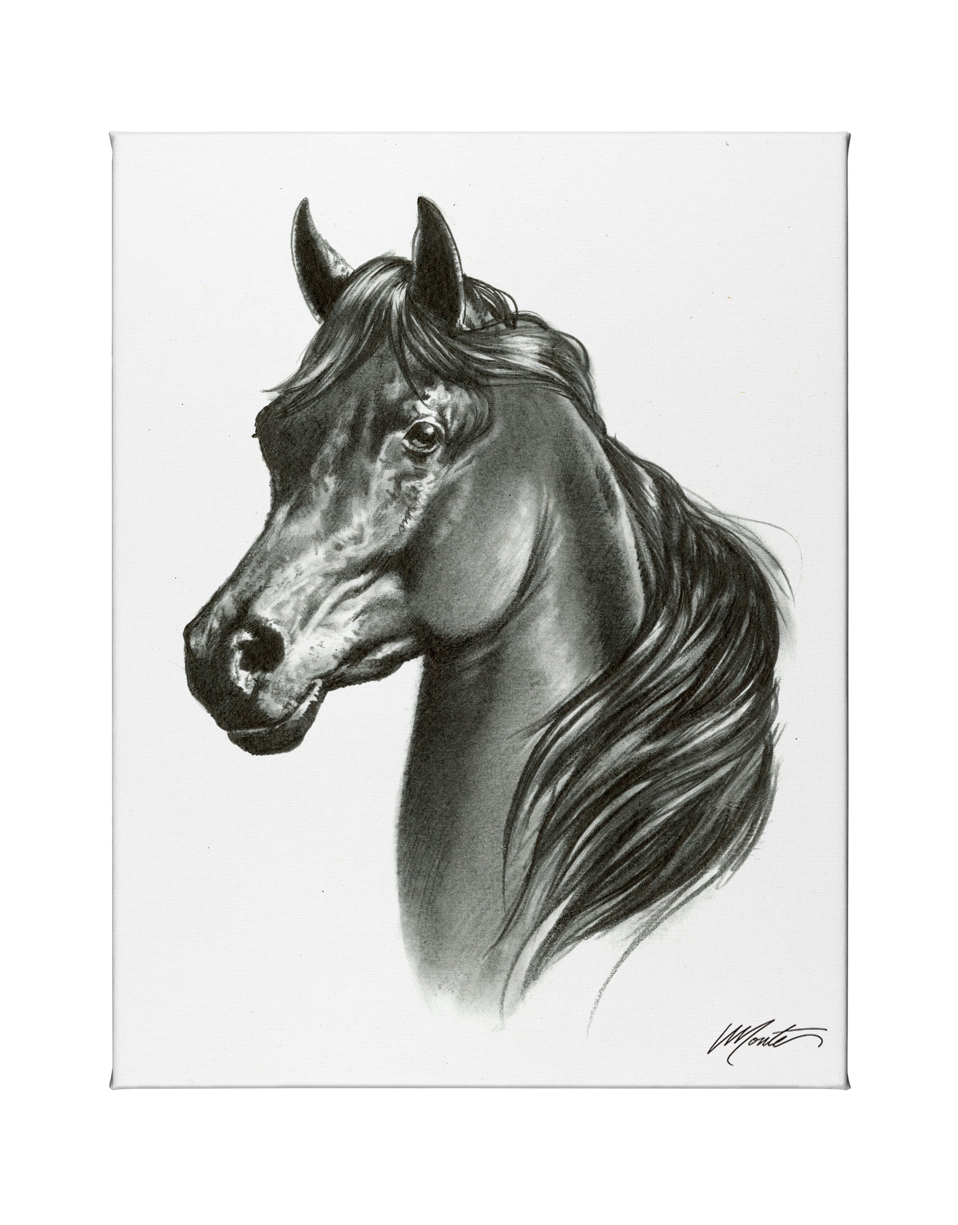 The strength and gracefulness of the legendary Arabian is captured in this vintage styled image created with pencil on paper by Western artist Monte M. Moore. The noble lineage of the Arabian stallion has long been fabled and sought after in stories and art for centuries and is easily recognizable with their unique and slender curved features.About the Product