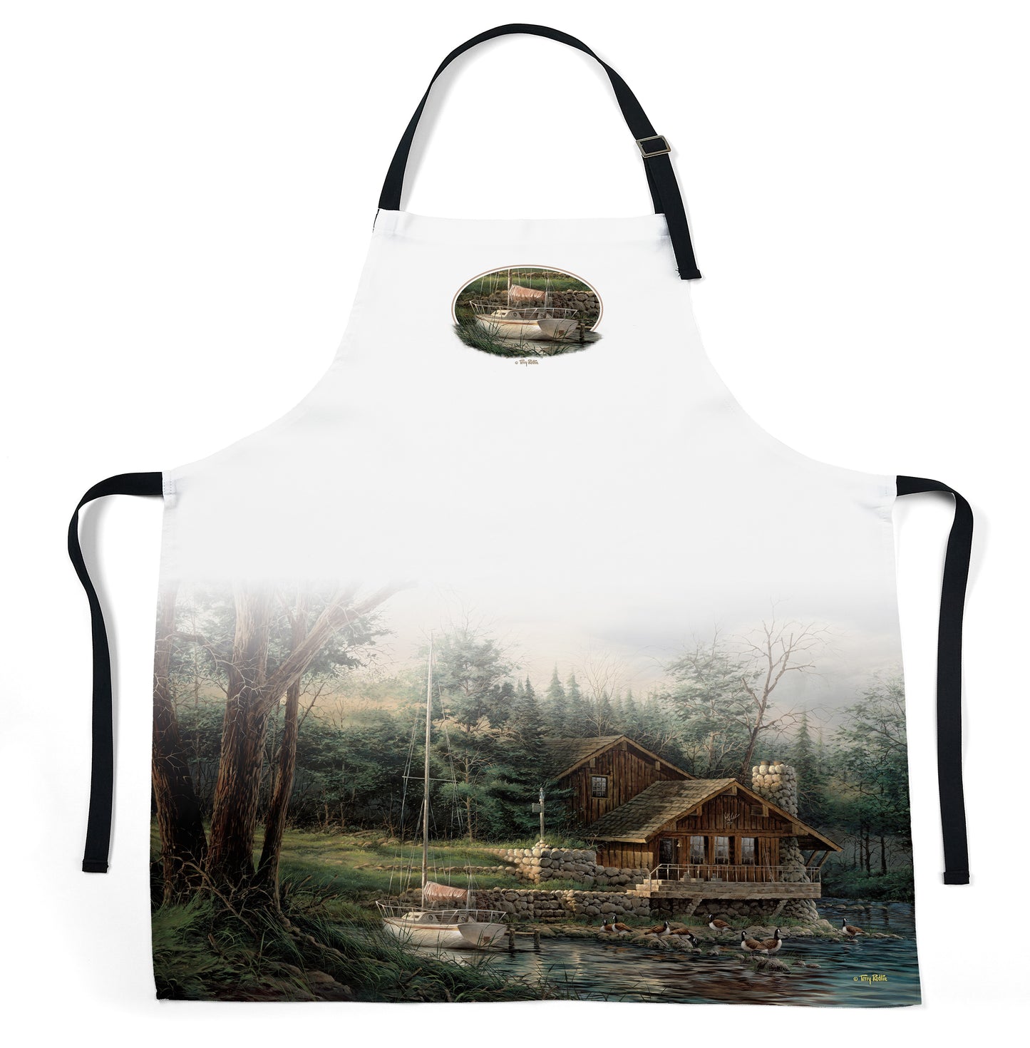 Now we're cooking! Mix in a dash of nature with our kitchen essentials. Beautiful wildlife images and scenes are printed, and heat cured for bold, high quality, and long-lasting wear. Apron boasts black accents with adjustable strap for custom fit, and tie back. 50/50 cotton/poly blend. Machine washable. Designed and printed in the USA. One size fits most. Apron size excluding straps: 34"H x 29"W