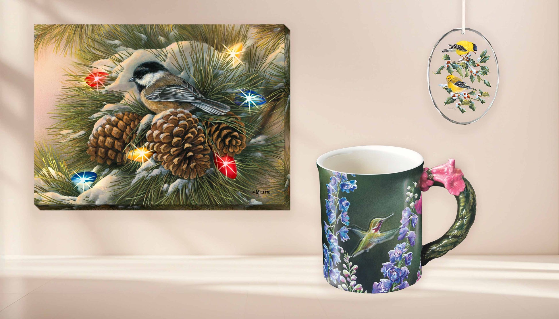 Celebrate the beauty and elegance of nature with the Birds Collection, featuring the artwork of Susan Bourdet, Catherine McClung, and Rosemary Millette. This enchanting collection showcases delicate songbirds in serene, seasonal settings, from a cozy winter perch adorned with glowing lights to the vibrant charm of hummingbirds and goldfinches in blooming landscapes. With intricate details, rich colors, and a sense of peaceful wonder, this collection brings a touch of the outdoors into any space. Perfect for bird lovers and those who appreciate the quiet beauty of wildlife, this collection adds warmth and artistry to home décor.