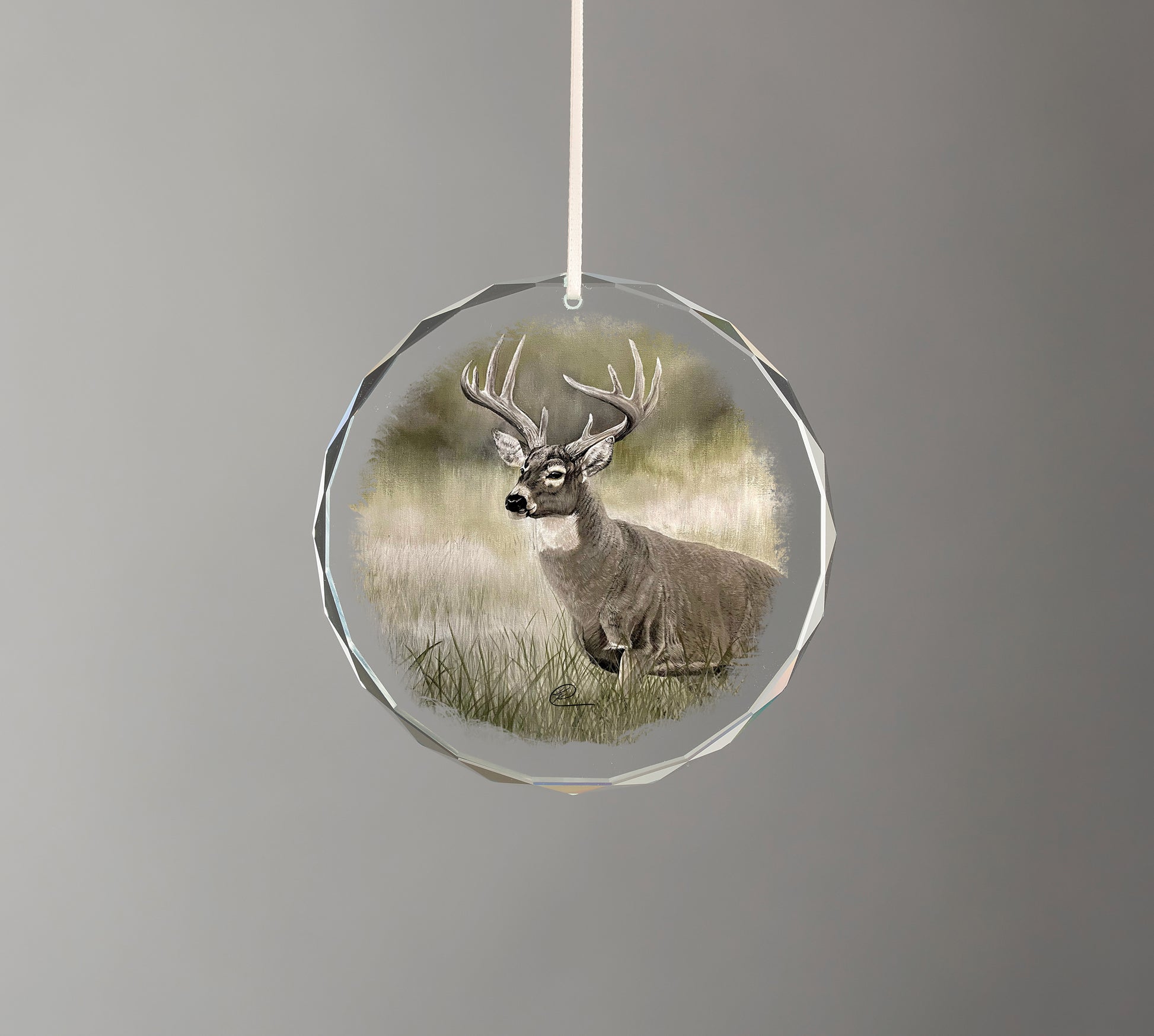 Round, beveled-cut glass ornaments feature images from your favorite Wild Wings artists. Includes 10" silver ribbon for hanging and black velvet bag for storage. Published by Wild Wings ® a division of Art Brand Studios, LLC. Designed and printed in North America.