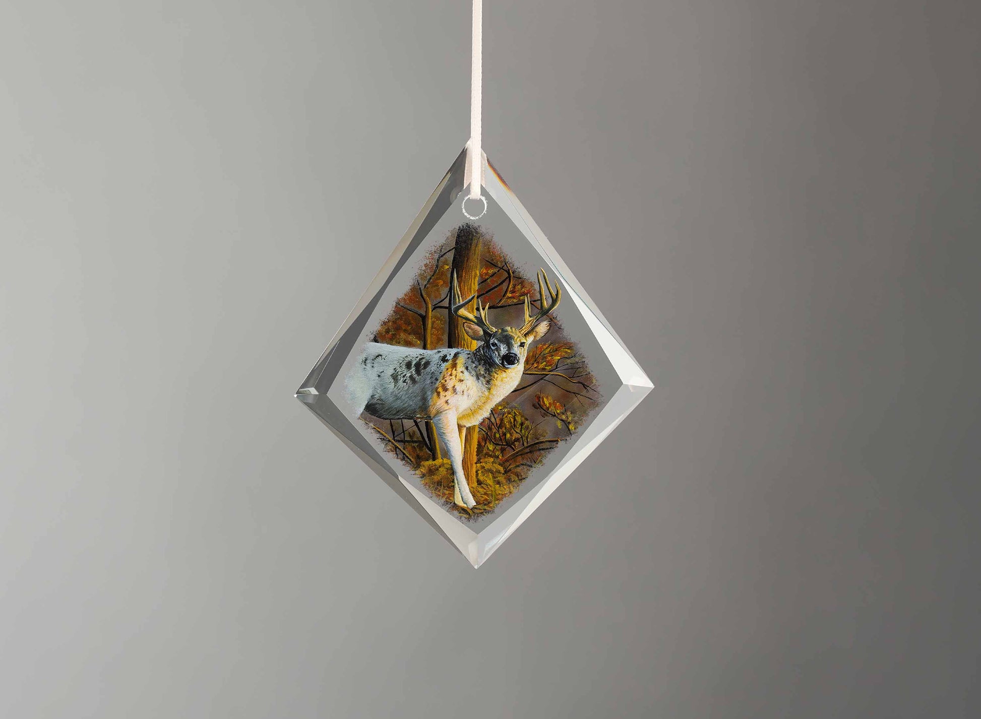 Tear drop, beveled-cut glass ornaments feature images from your favorite Wild Wings artists. Includes 10" silver ribbon for hanging and black velvet bag for storage. Produced by Wild Wings; a division of Art Brand Studios. Designed and printed in North America. 4"H x 3"W