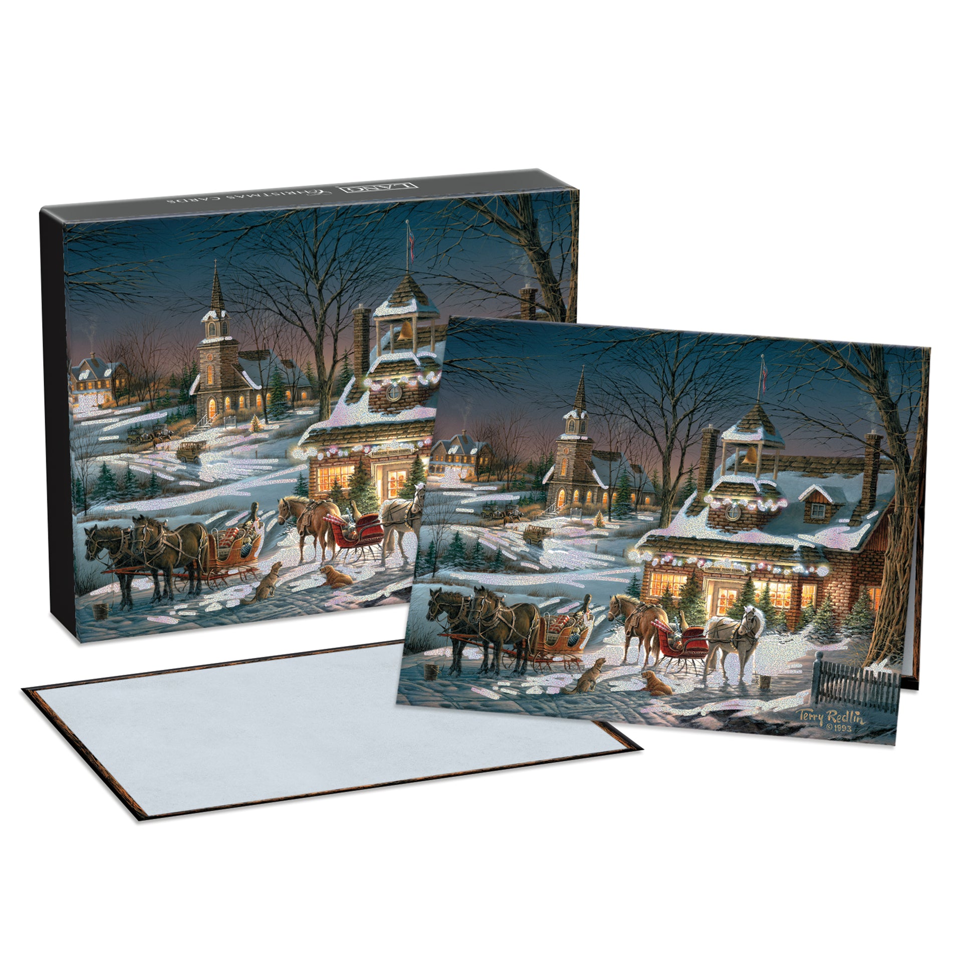 LANG Boxed Christmas cards are an elegant way to send season's greetings. With linen-embossed paper stock, heartwarming artwork by Terry Redlin, and loving holiday wishes, Evening Rehearsal Boxed Christmas Cards will surely make a lasting impression this holiday season! The box set includes 18 cards and 19 matching envelopes in a sturdy keepsake box.