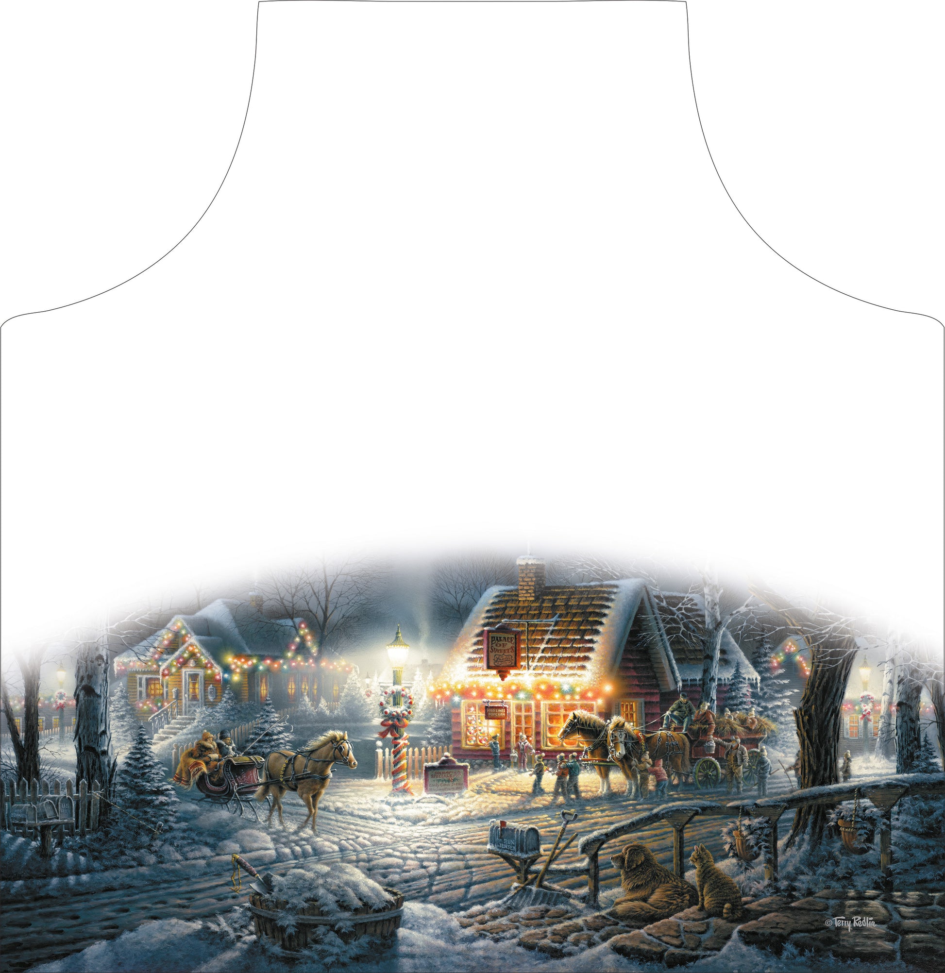 The Palace of Sweets, a neighborhood store specializing in tempting treats for kids was an actual location in Terry Redlin’s youth. In this romantic painting he remembers that nostalgic time and place during the Christmas season. The area homes are gaily decorated. The corner lamppost is a work of art in its own right with wreath, bow and unique strips of twirled bunting. Into this festive scene a wagonload of children on a holiday hayride have stopped for a bit of shopping. “The variety of candy in glass jars was huge,” the artist recalls,“ and back then marshmallows were sold in pails. I haven’t seen that for years.”