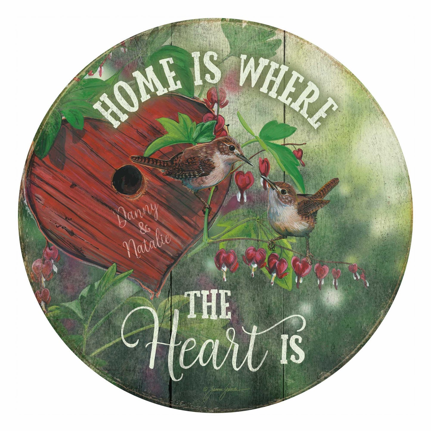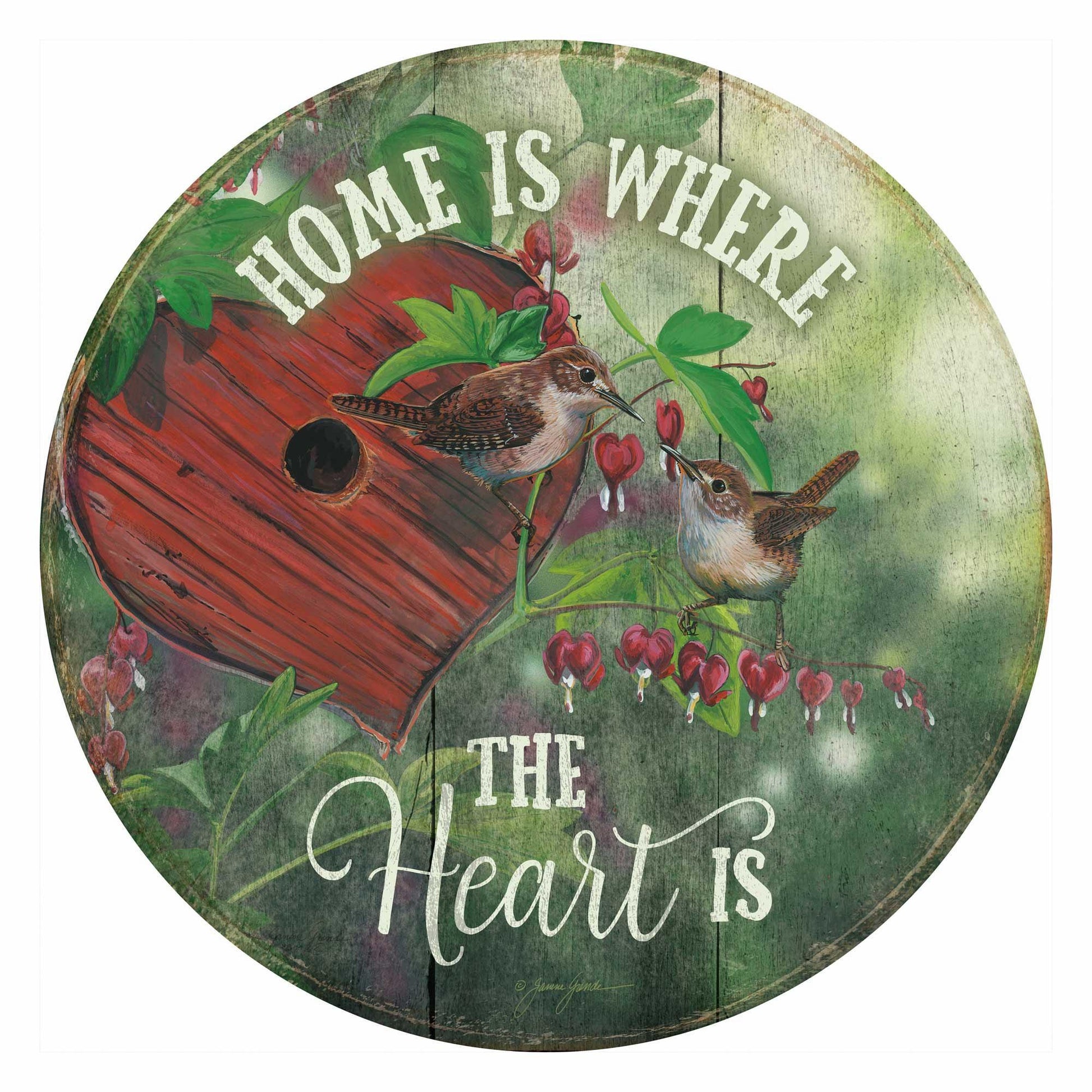 Featuring the image "Lovers Lane and Wrens" by Janene Grende, this rustic round wood sign reflects a wise sentiment with a shabby-chic style. Ready to hang with key hole hanger in back. 12.5"dia. Black-finished edge. Display indoors only. Designed and printed in the North America for indoor use only. Produced by Wild Wings; a division of Art Brand Studios, LLC. Also available personalized.