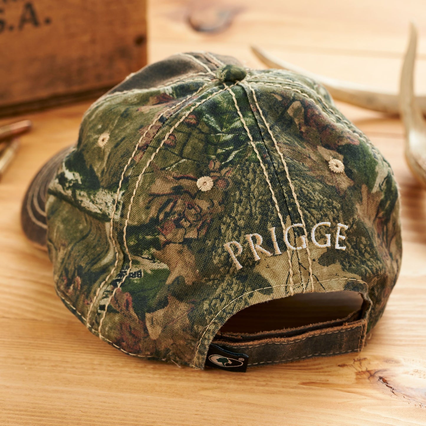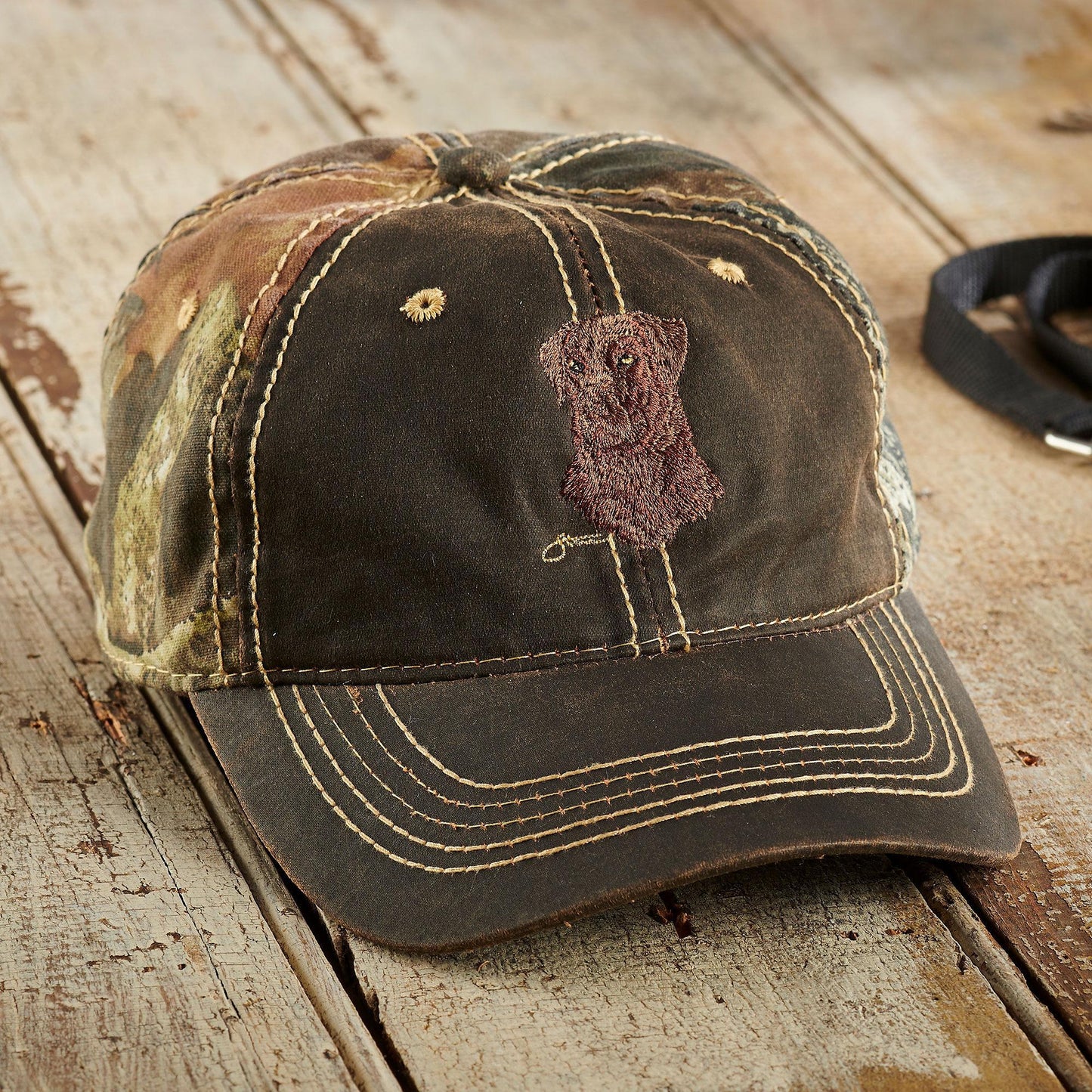 A tribute to man's best friend! Sporting dog portraits by award winning artist Scot Storm are embroidered on a six panel midprofile cap with pre-curved visor. Heavy weight twill in camo pattern with waxed two front panels and bill to protect against the elements. Adjustable back closure provides a great fit. One size fits all. Imported. Personalize with up to 15 characters across the back. Chocolate Lab.