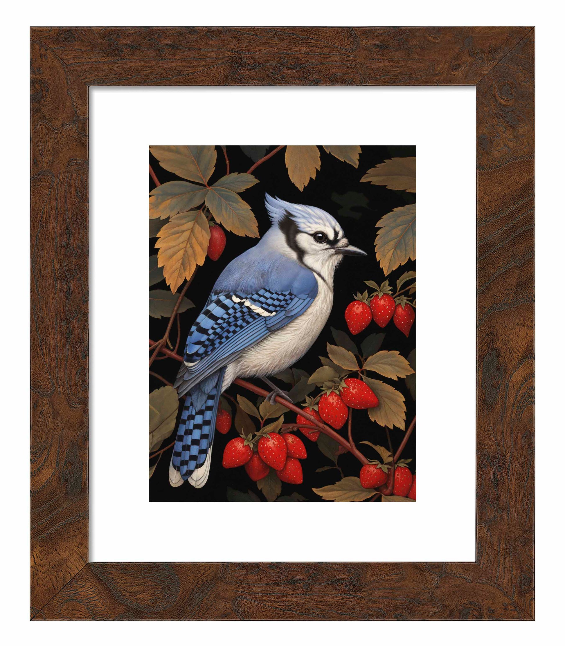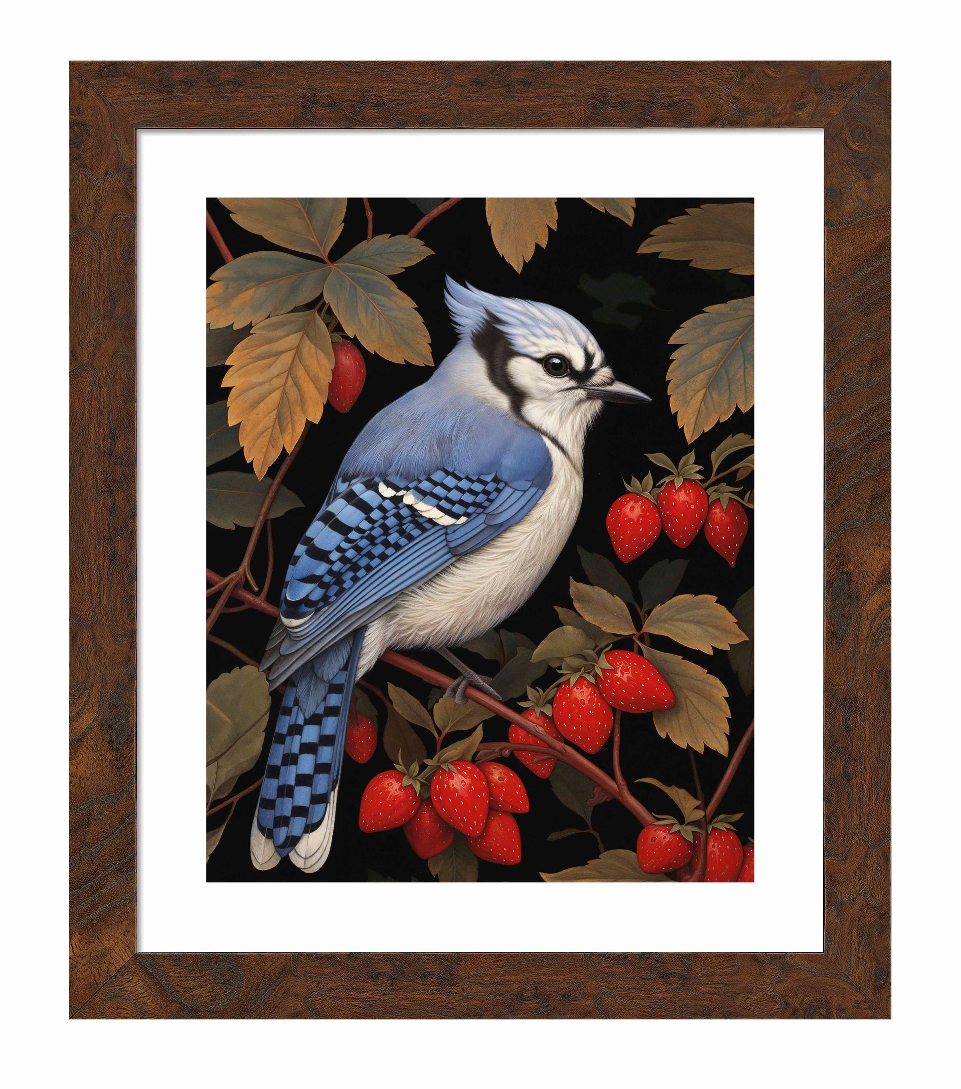 Berry Bliss - Blue Jay in Strawberry Patch - Art Prints