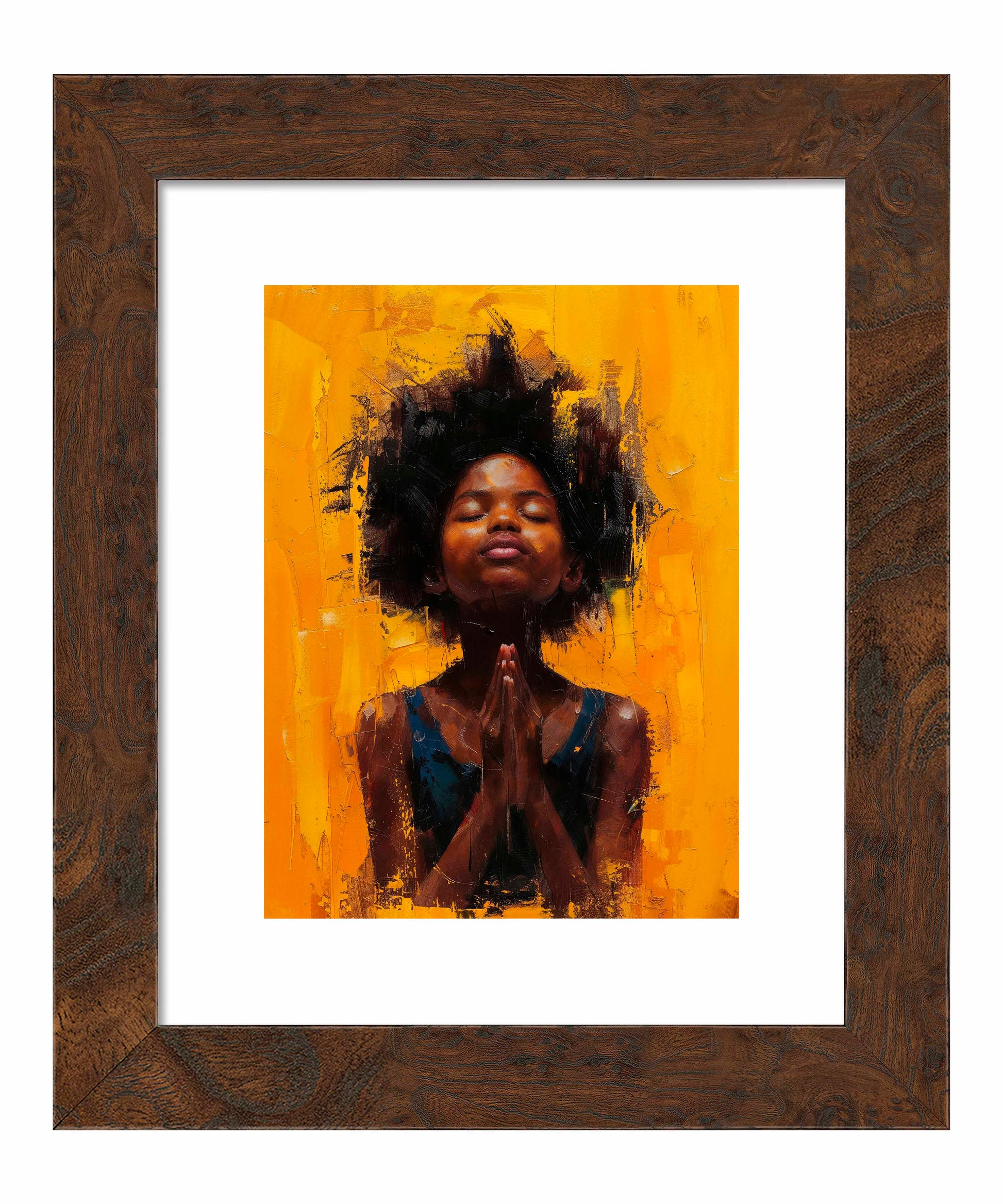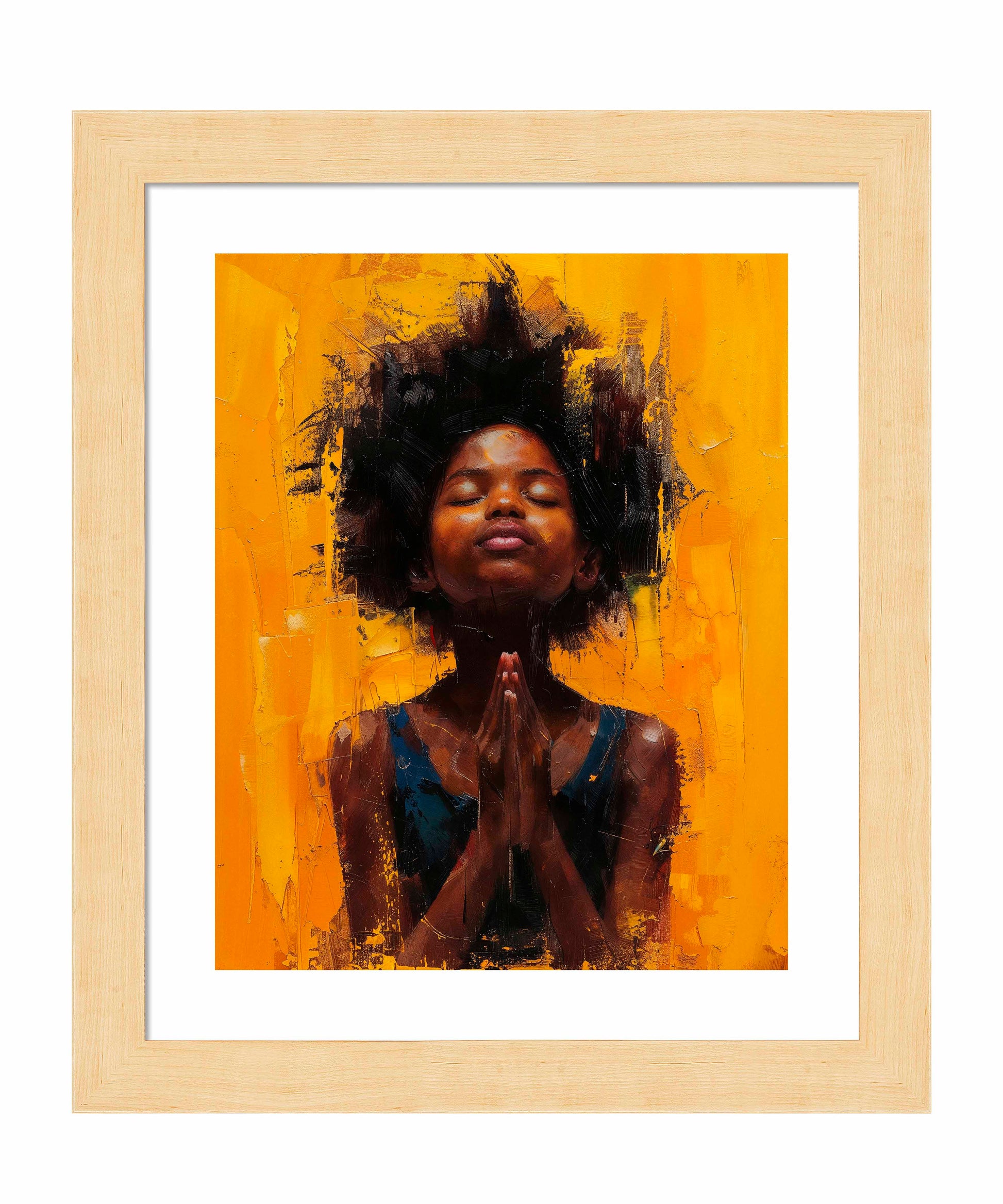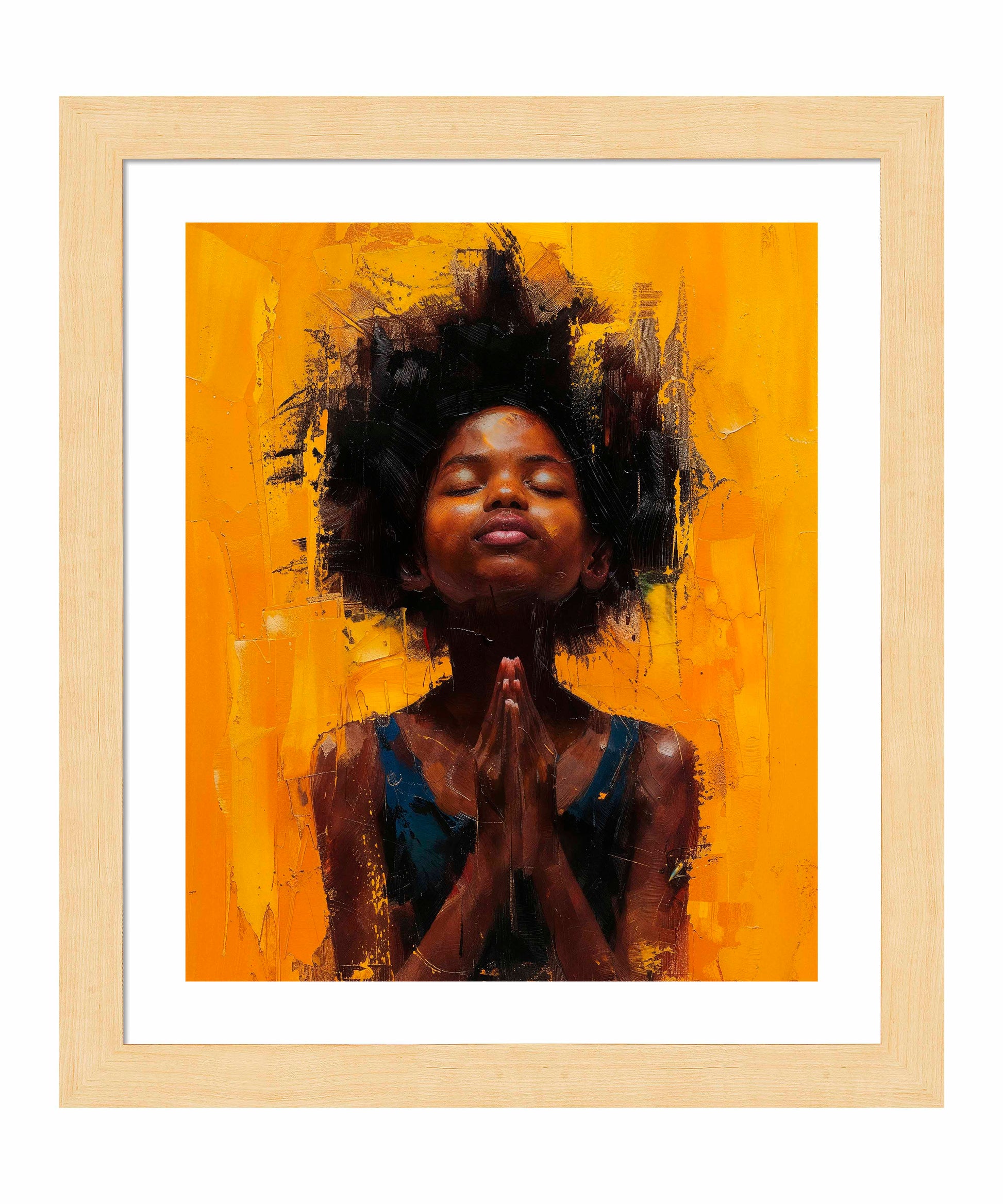 Candlelit Devotion serves as a visual hymn to spiritual purity and quiet reflection, encapsulating the idea of finding light in the darkness through prayer. The expressive use of color and texture conveys both warmth and spiritual intensity, making the piece an inspiring representation of personal connection to faith and devotion.