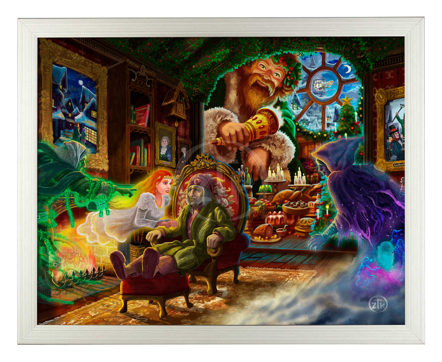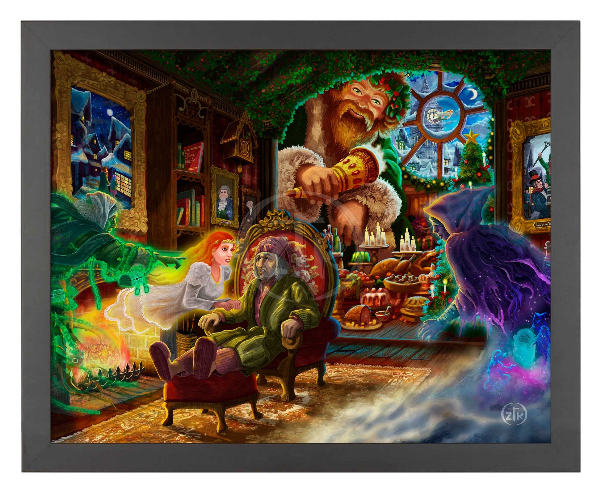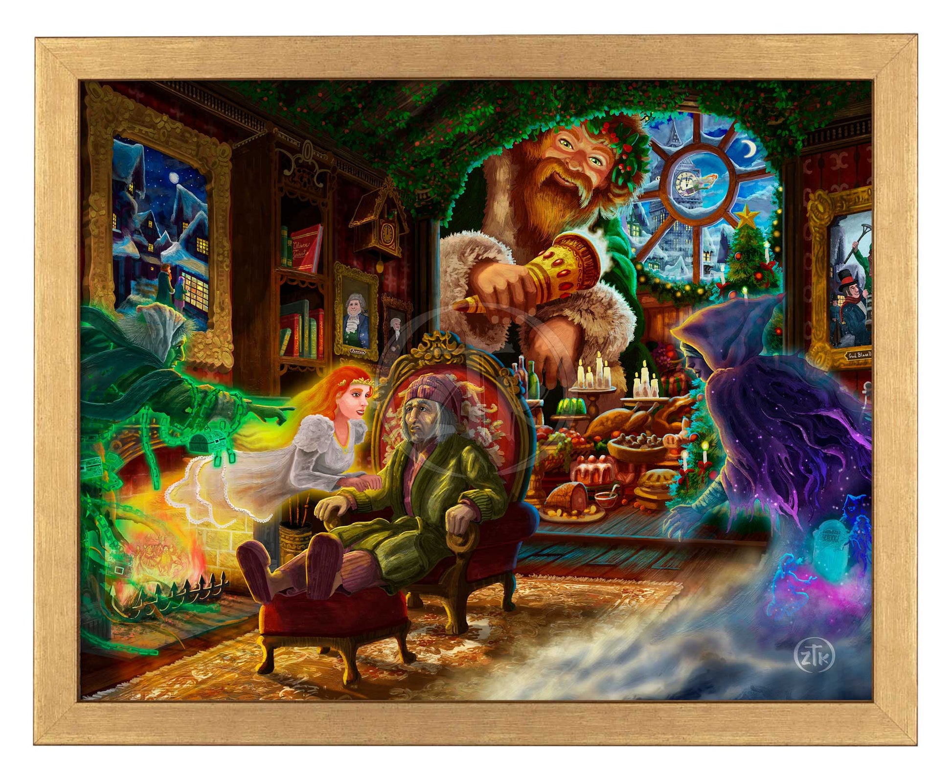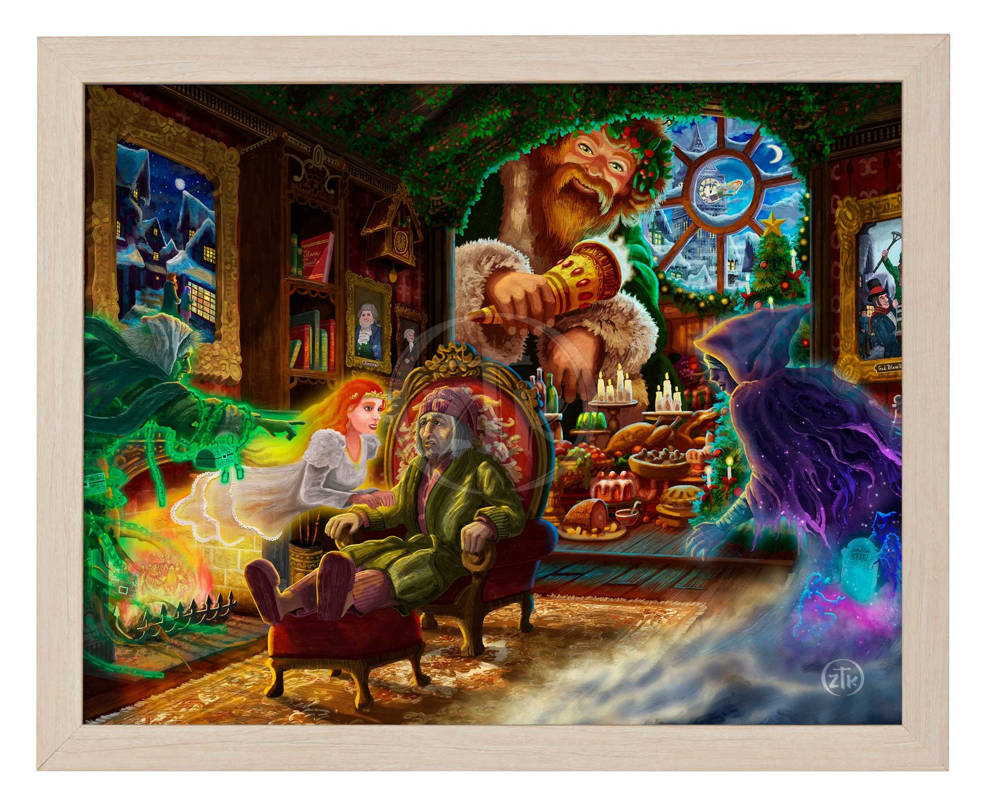 I work to be a storyteller in my art. Whether it is my own tale that I am telling or the musings of another raconteur, I love to provide my viewers with an imaginative visual journey. In “A Christmas Carol,” I attempt to capture the literary sojourn of one of the world’s greatest fabulists, Charles Dickens. This painting of his culturally profound novella has all of its major characters brushed into existence. Of course, the four visiting ghosts of tradition make an appearance. Marley’s Ghost and the Spirits of Christmas Past, Present, and Future are all fully realized to scrutinize and sermonize my frightened Ebenezer Scrooge sitting awake in his parlor. But beyond these denizens of the great beyond and their singular mortal target of concern, this painting pays homage to others who inhabit Dickens’ world. Look closely, and you will find Fezziwig, Scrooge’s old mentor, whose jovial nature and generosity stand in stark contrast to Ebenezer’s miserly ways. And, of course, there are Bob Cratchit and Tiny Tim, characters designed to show the true meaning of holiday happiness and evoke the charity of the Christmas spirit. “A Christmas Carol” is a long-standing holiday favorite, and I hope that this interpretation will inspire holiday “spirit” in all who see it. As Tiny Tim might exult, “God bless us, everyone,” and thank you all for sharing my adventure in art.